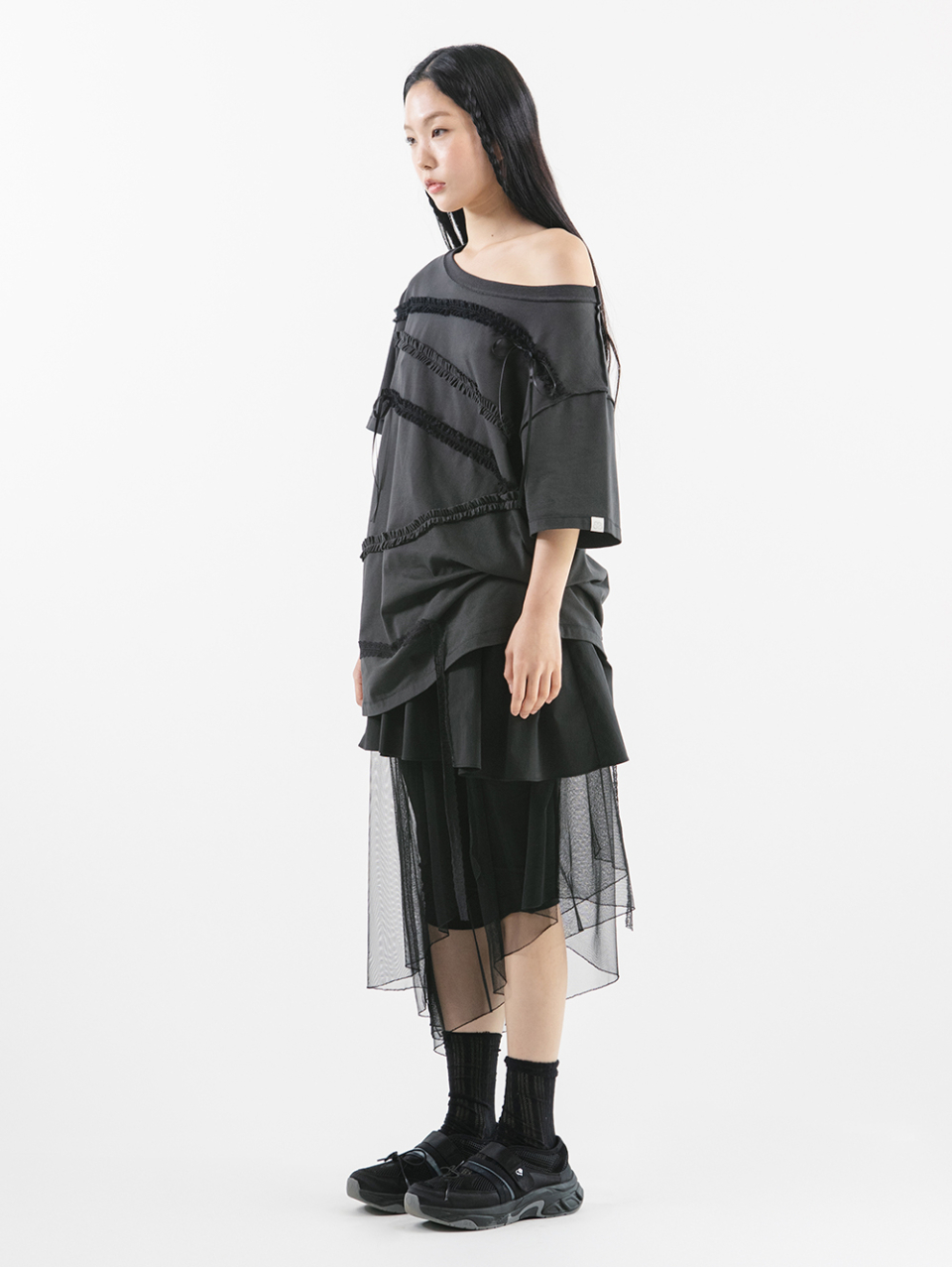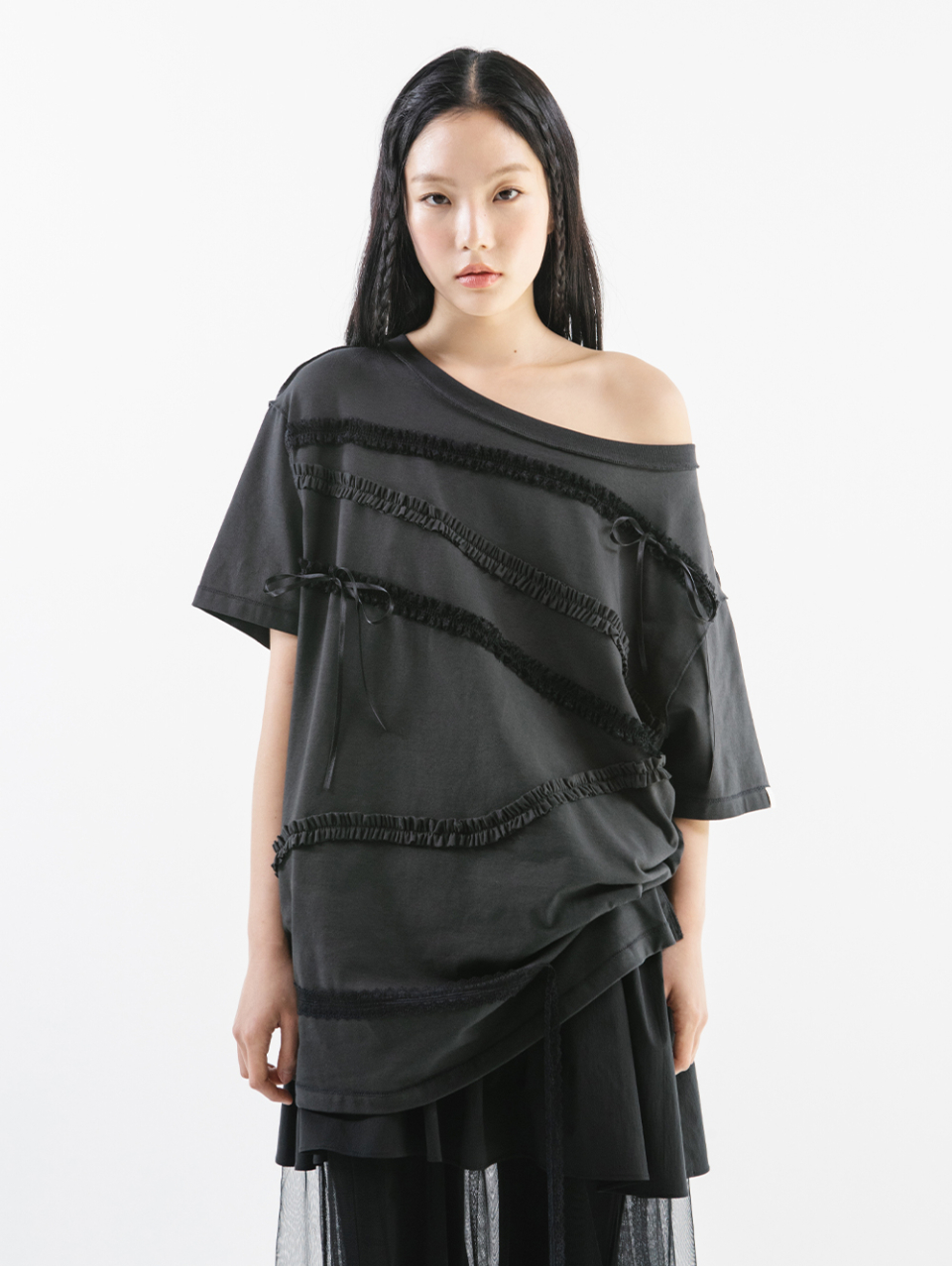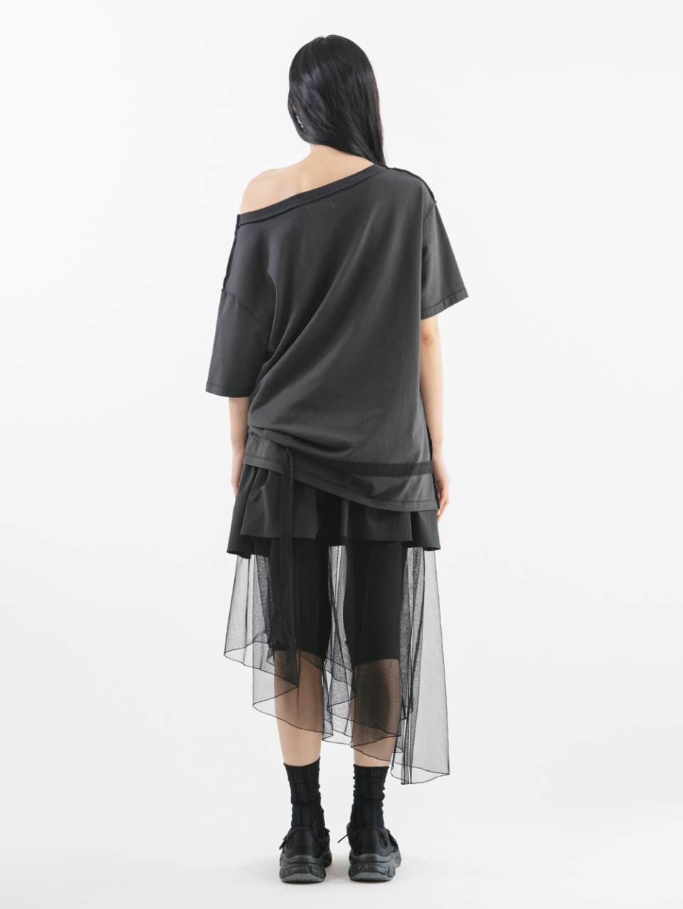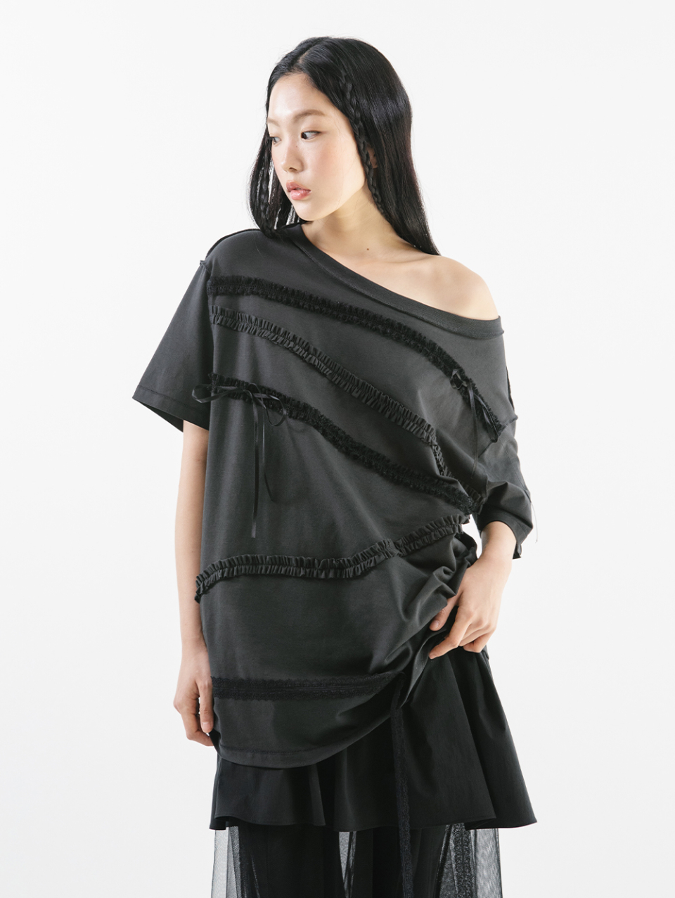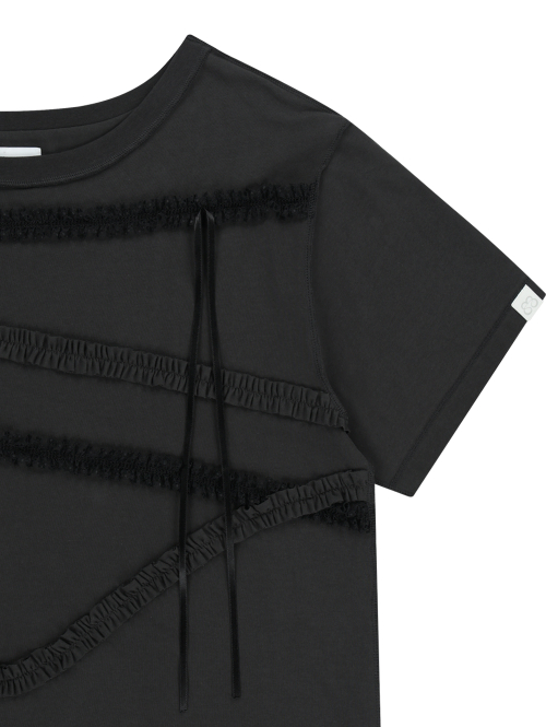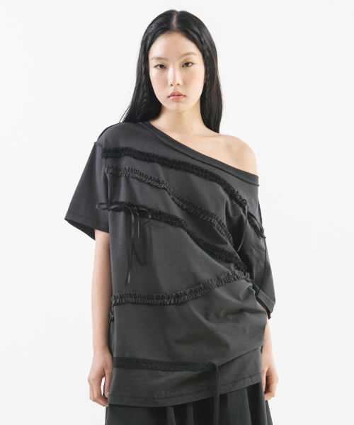 LACE STRAP OVERSIZED T-SHIRT [CHARCOAL]