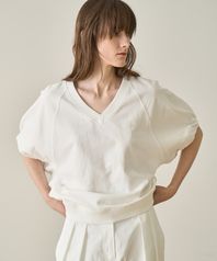 볼륨 소매 셔링 스웻셔츠