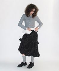 도트 프릴 롱 스커트_블랙