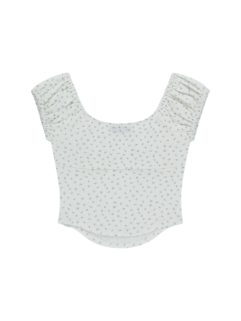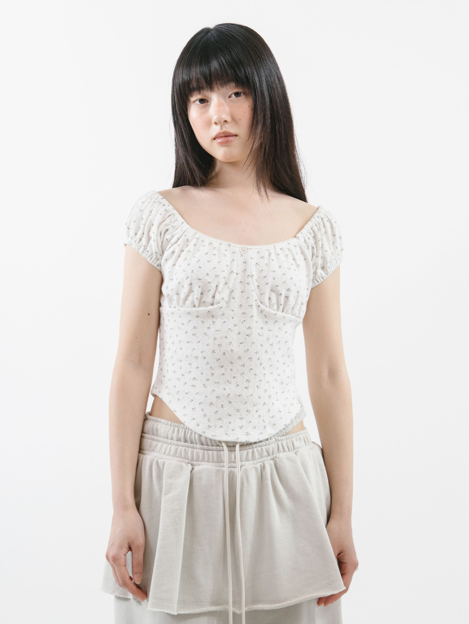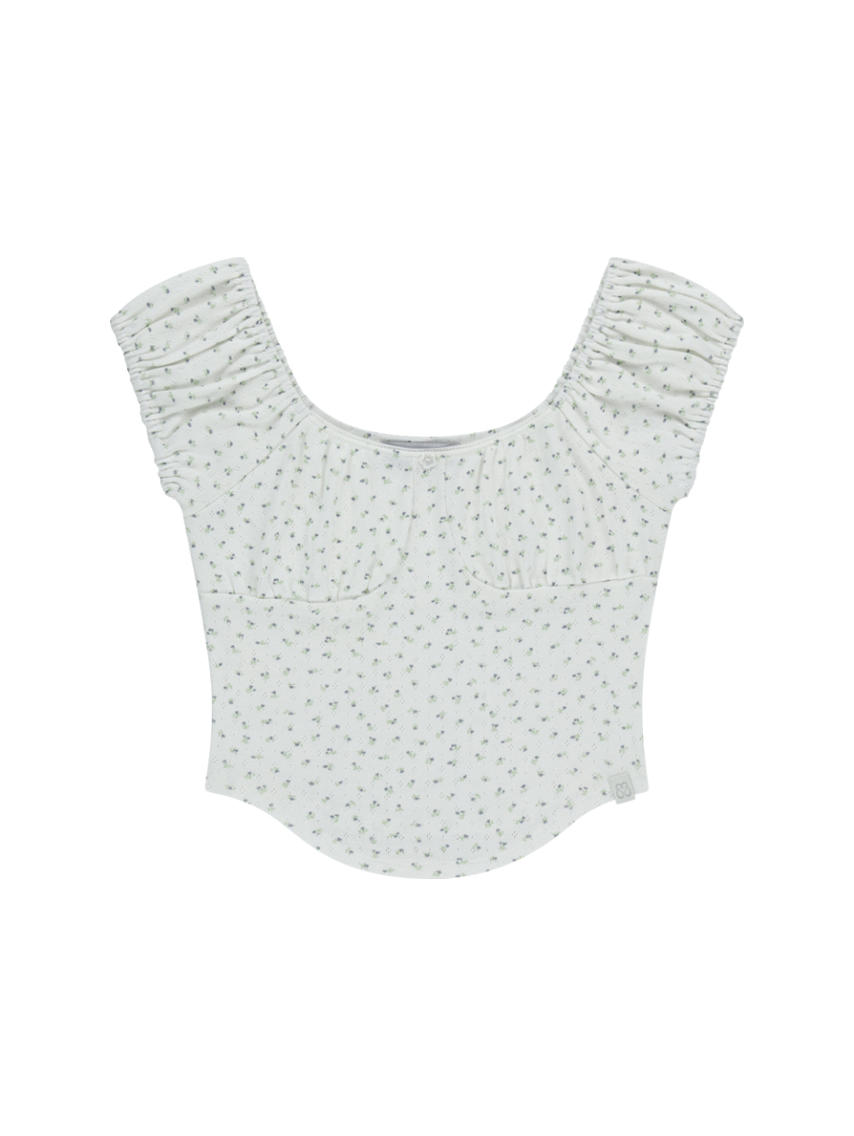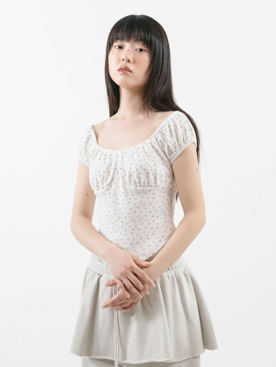 FLOWER SHIRRED T-SHIRT [WHITE]