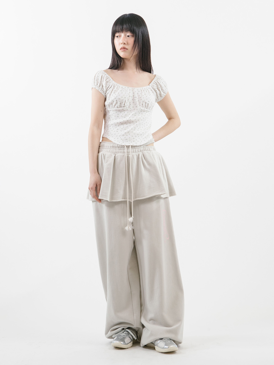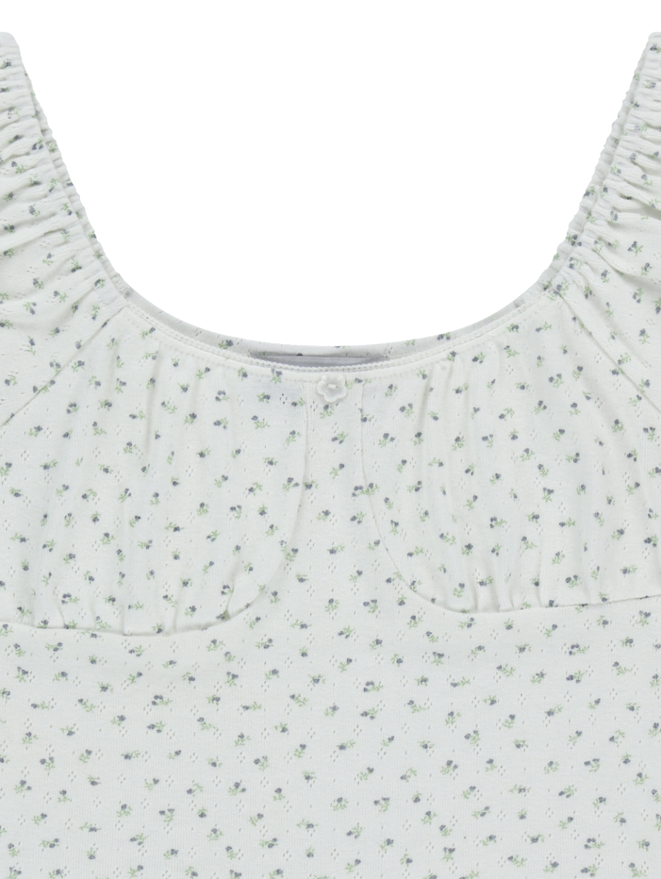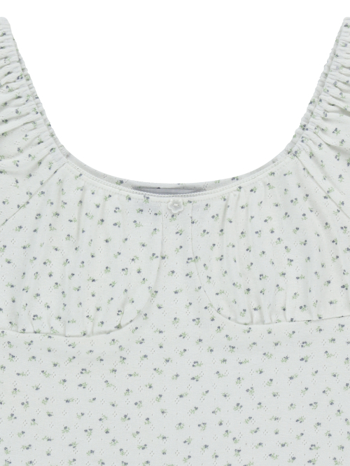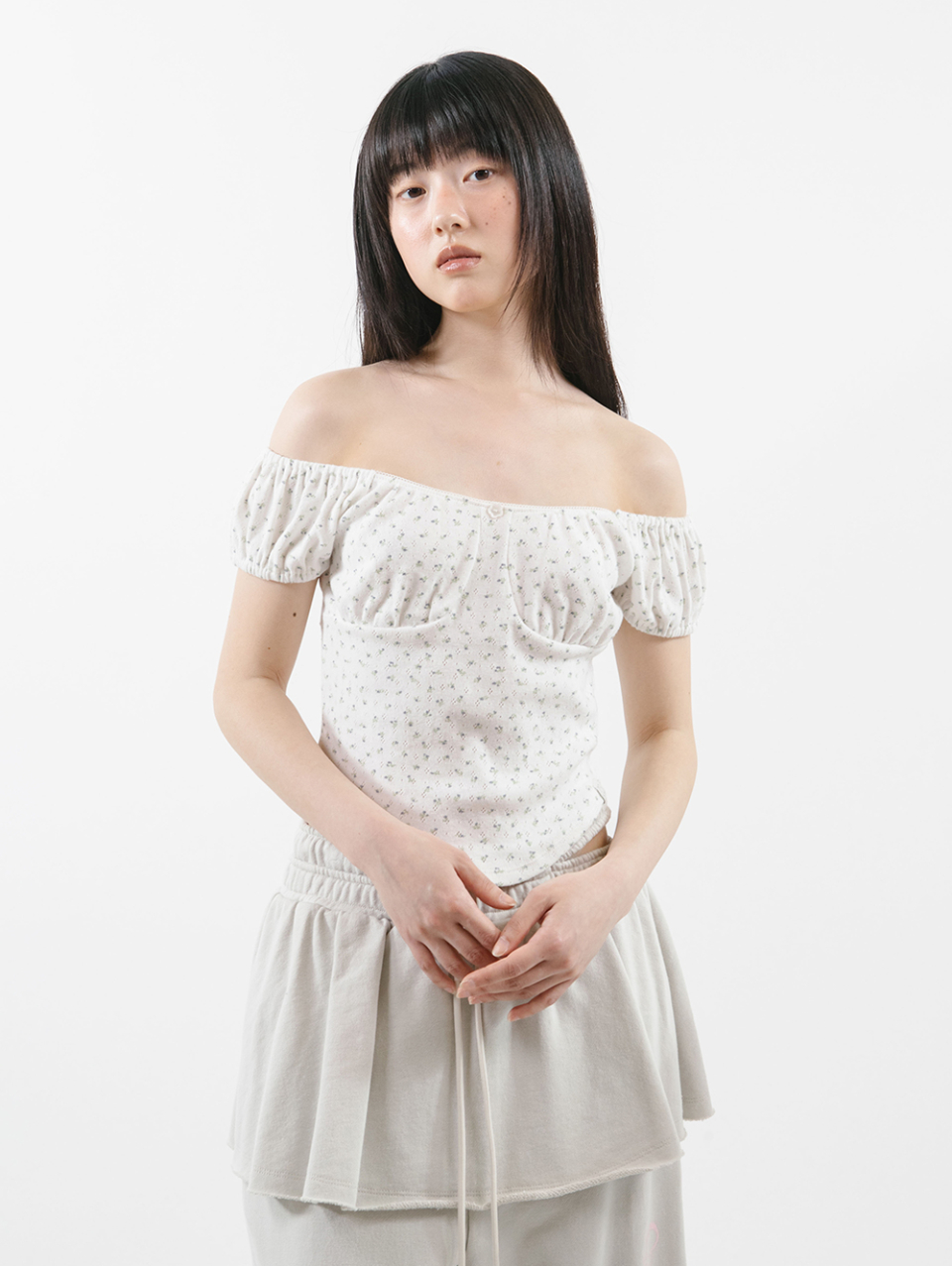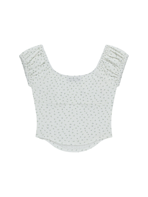 FLOWER SHIRRED T-SHIRT [WHITE]