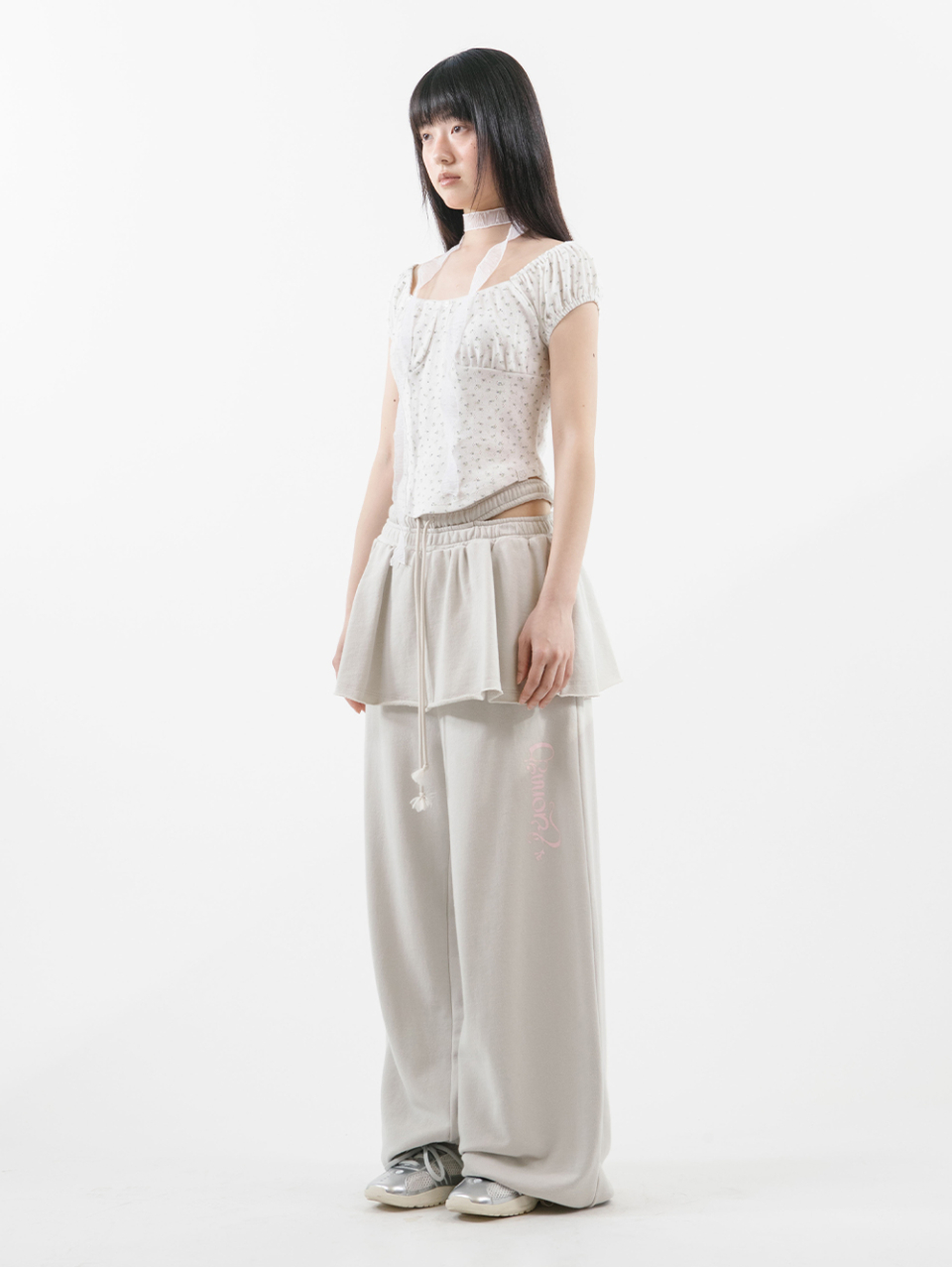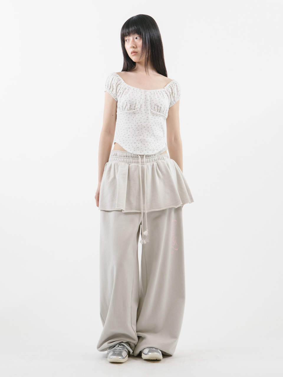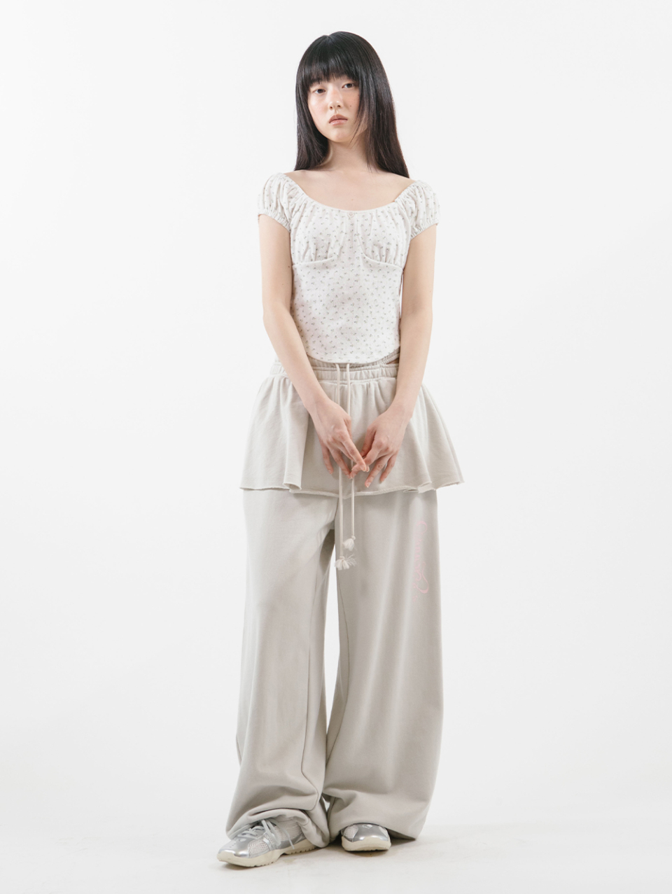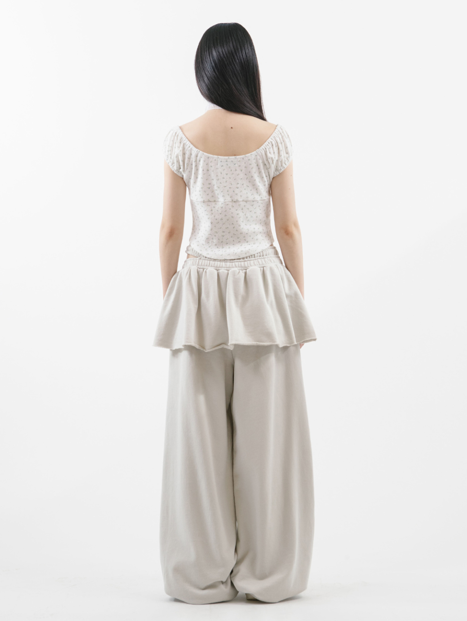 FLOWER SHIRRED T-SHIRT [WHITE]