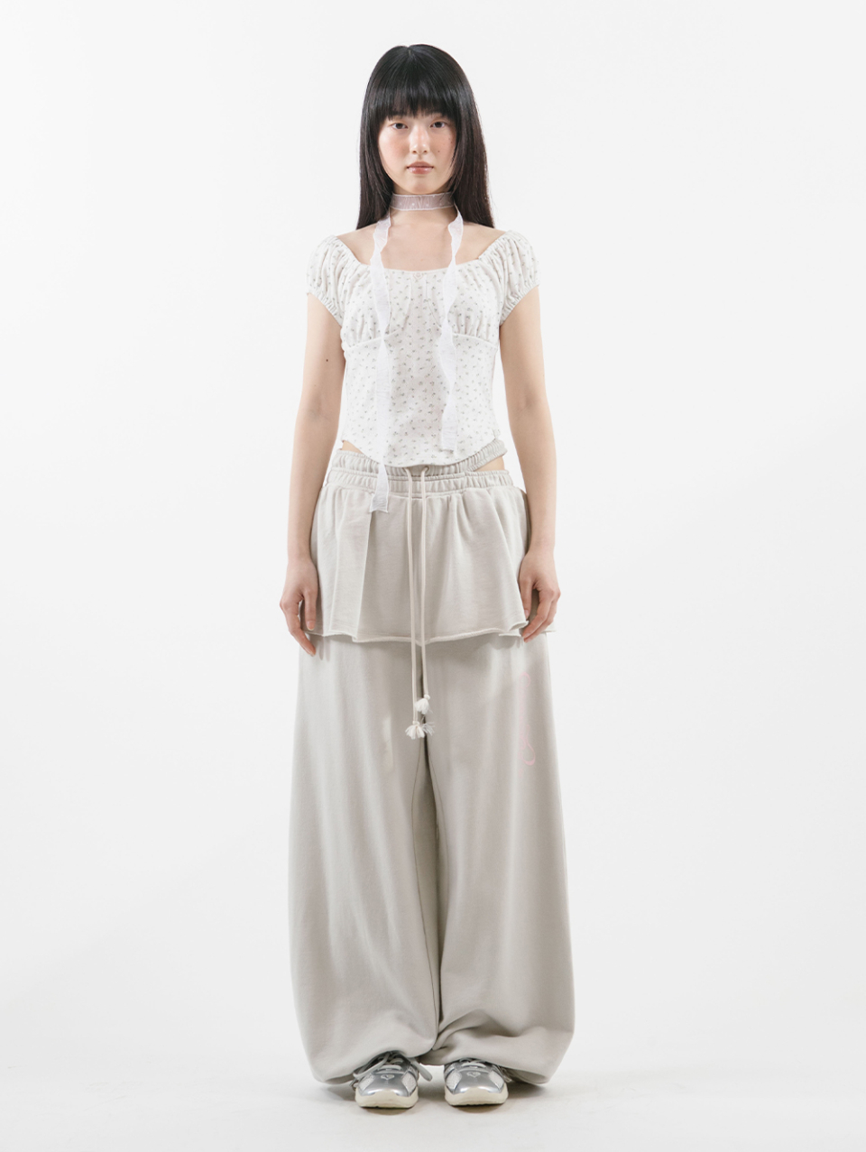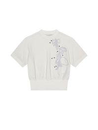 RIBBON GRAPHIC MOCK NECK TOP [WHITE]