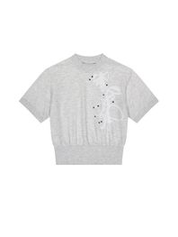 RIBBON GRAPHIC MOCK NECK TOP [HEATHER GREY]