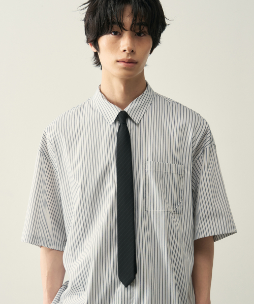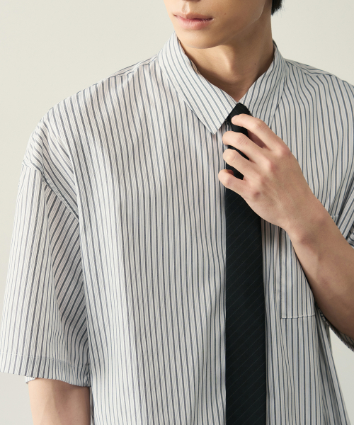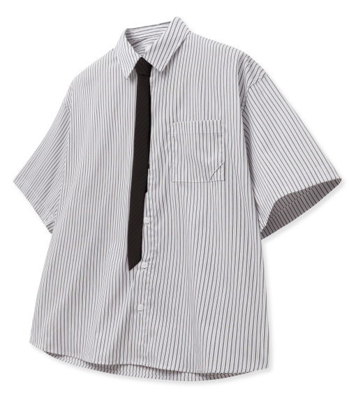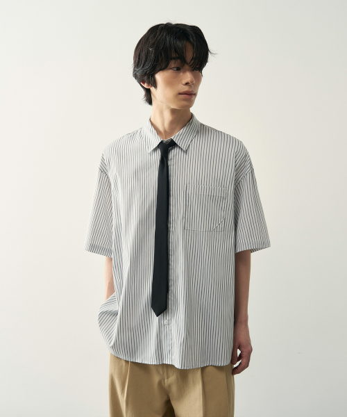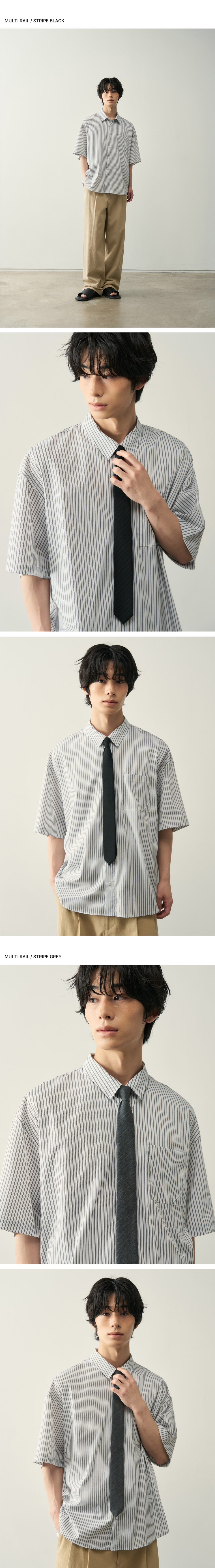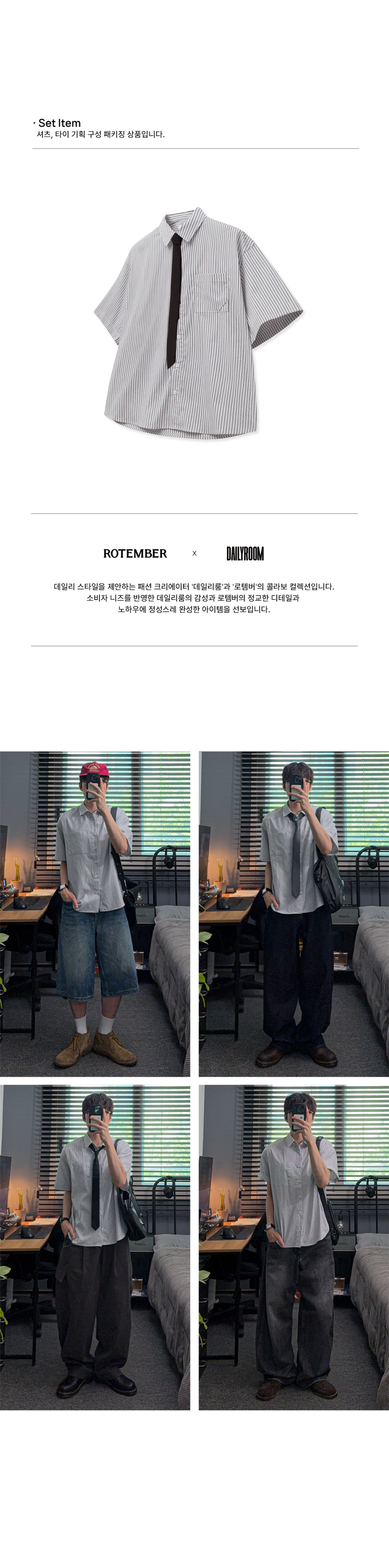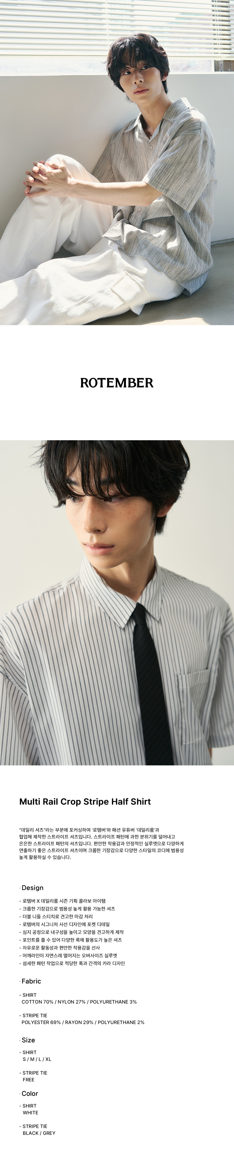 [데일리룸 X 로템버] 멀티 레일 크롭 스트라이프 하프 셔츠 [WHITE] 단품/SET
