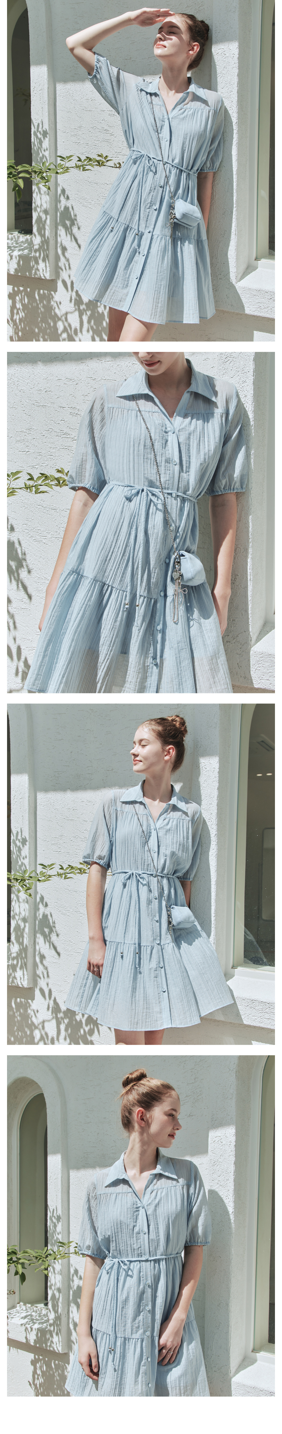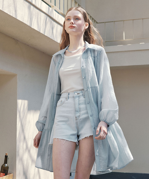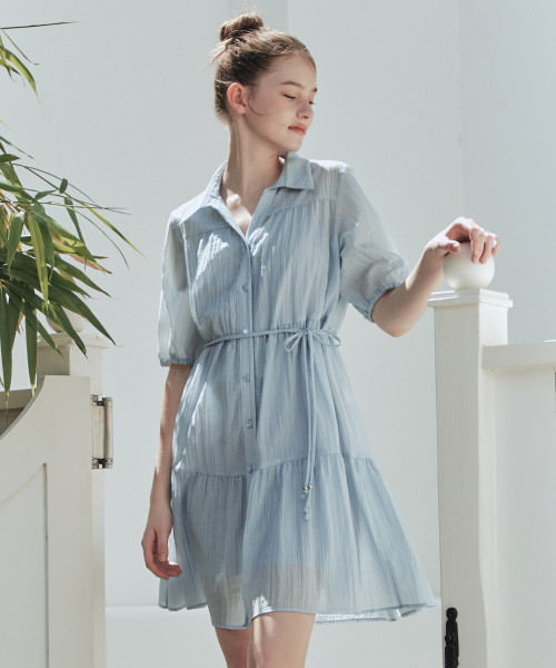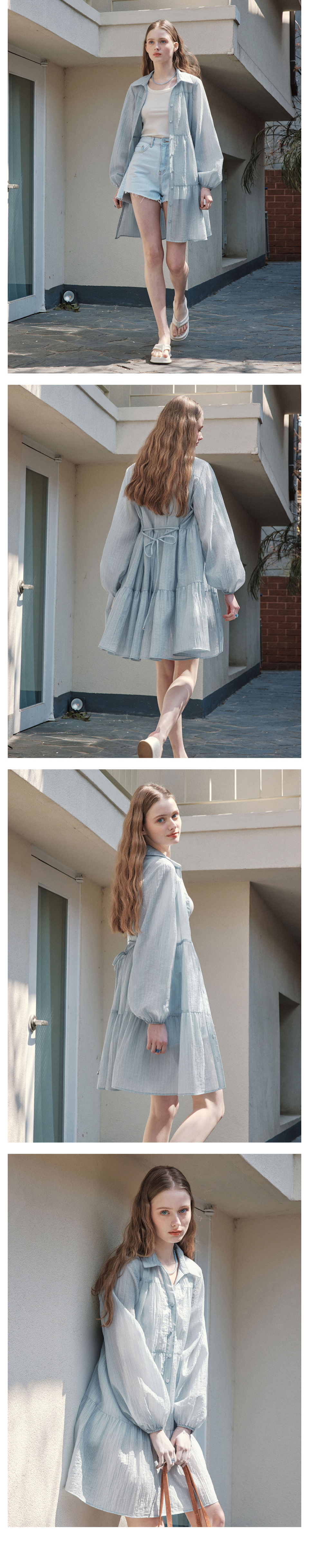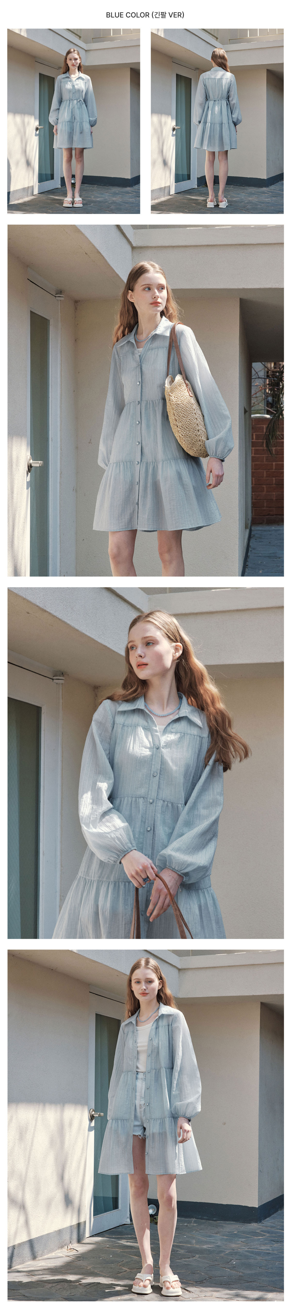 [반팔&긴팔ver.] 레인 셔츠 원피스 / 블루