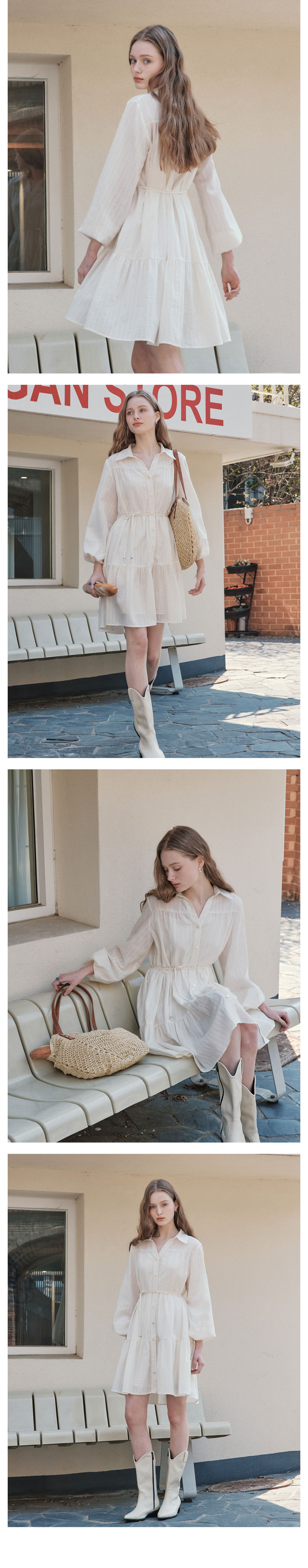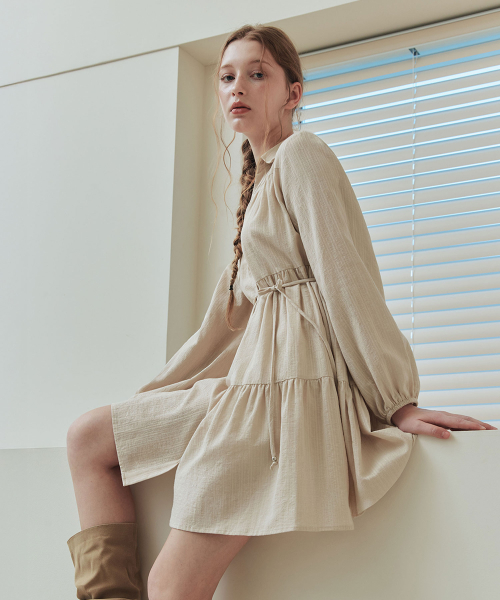라헬 셔링 백포인트 롱 원피스 - Cream yellow