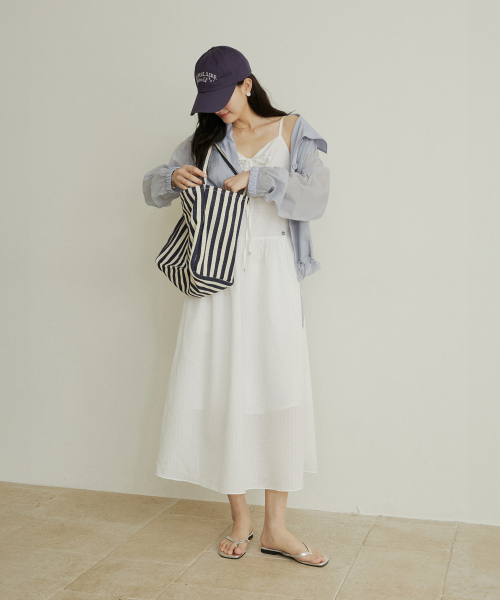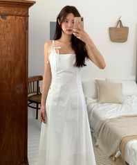 나일론 스트랩 리본 롱 원피스_3COLORS