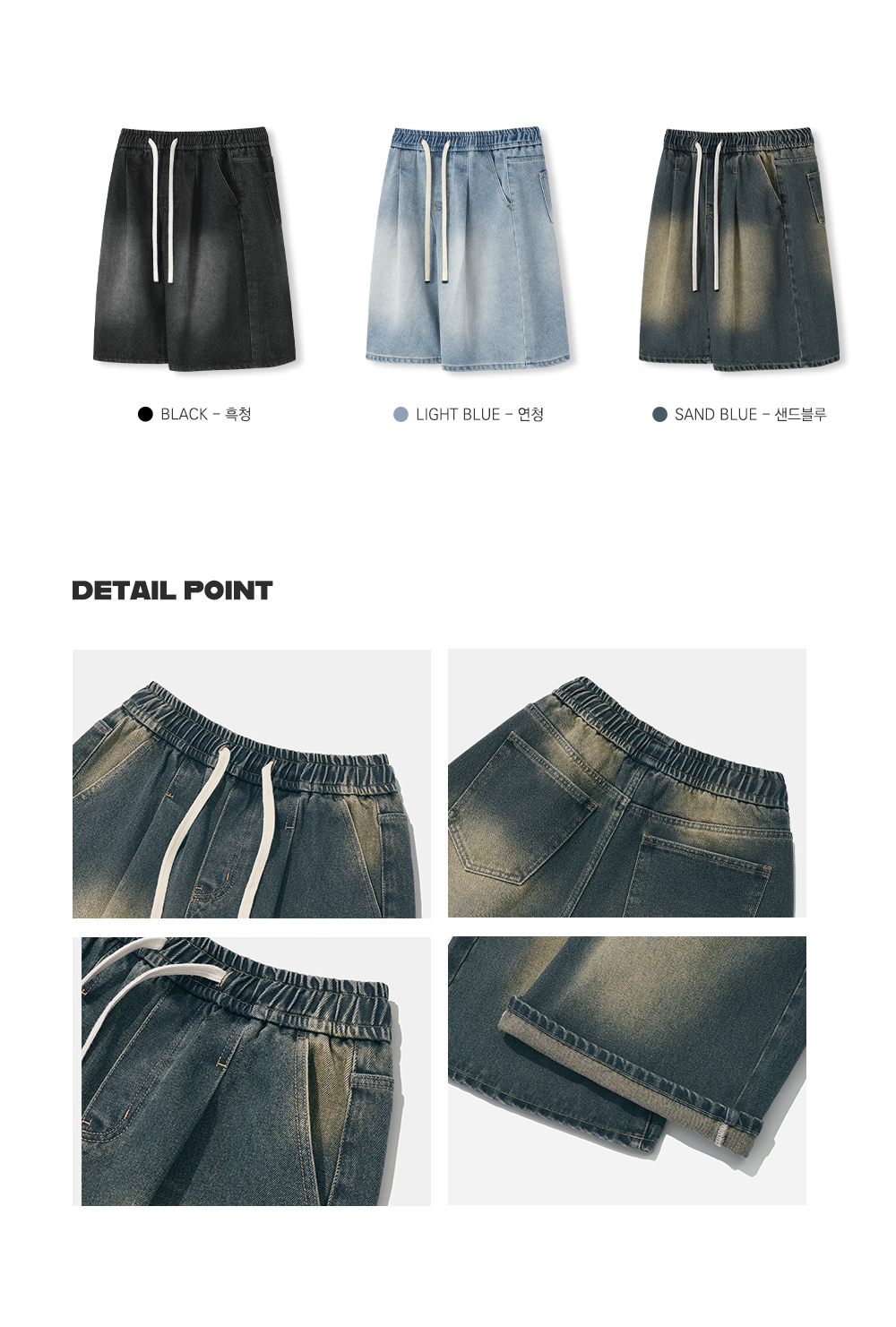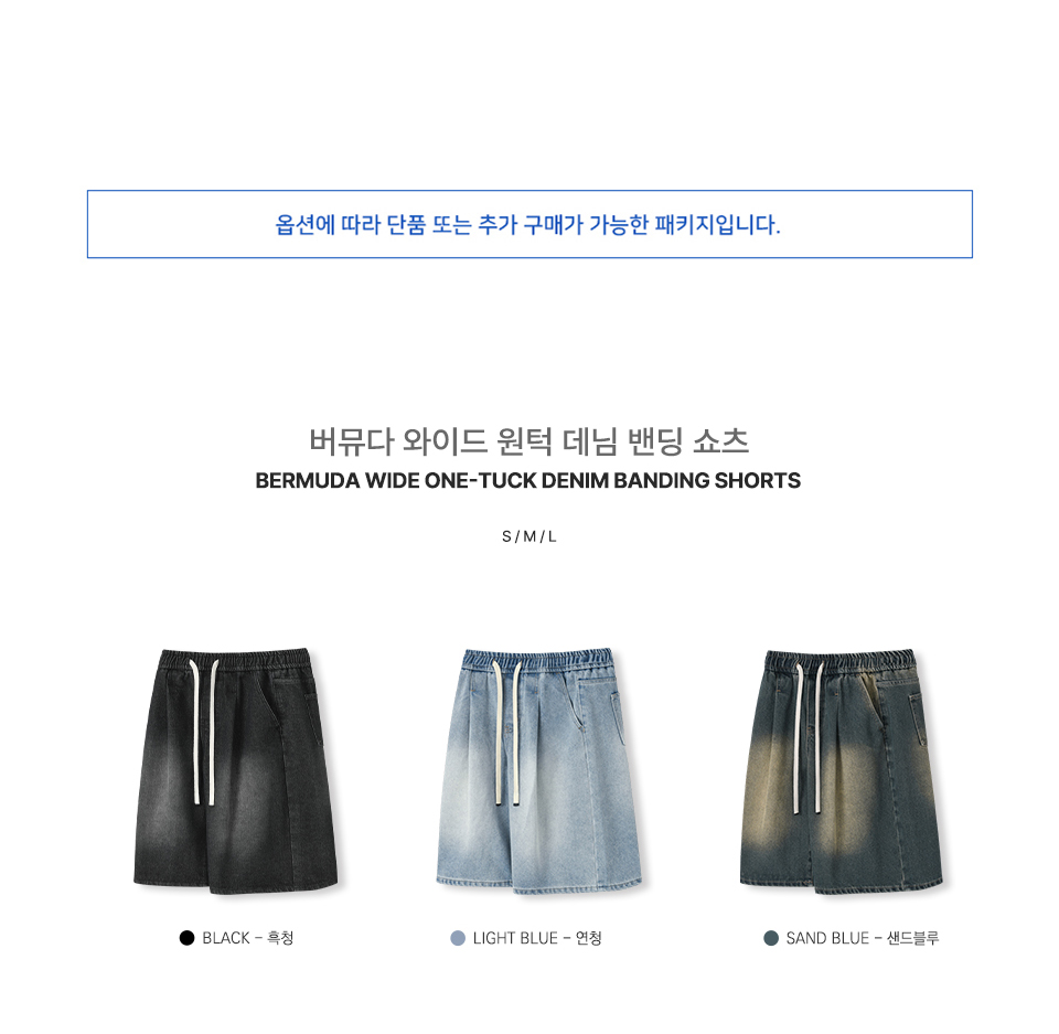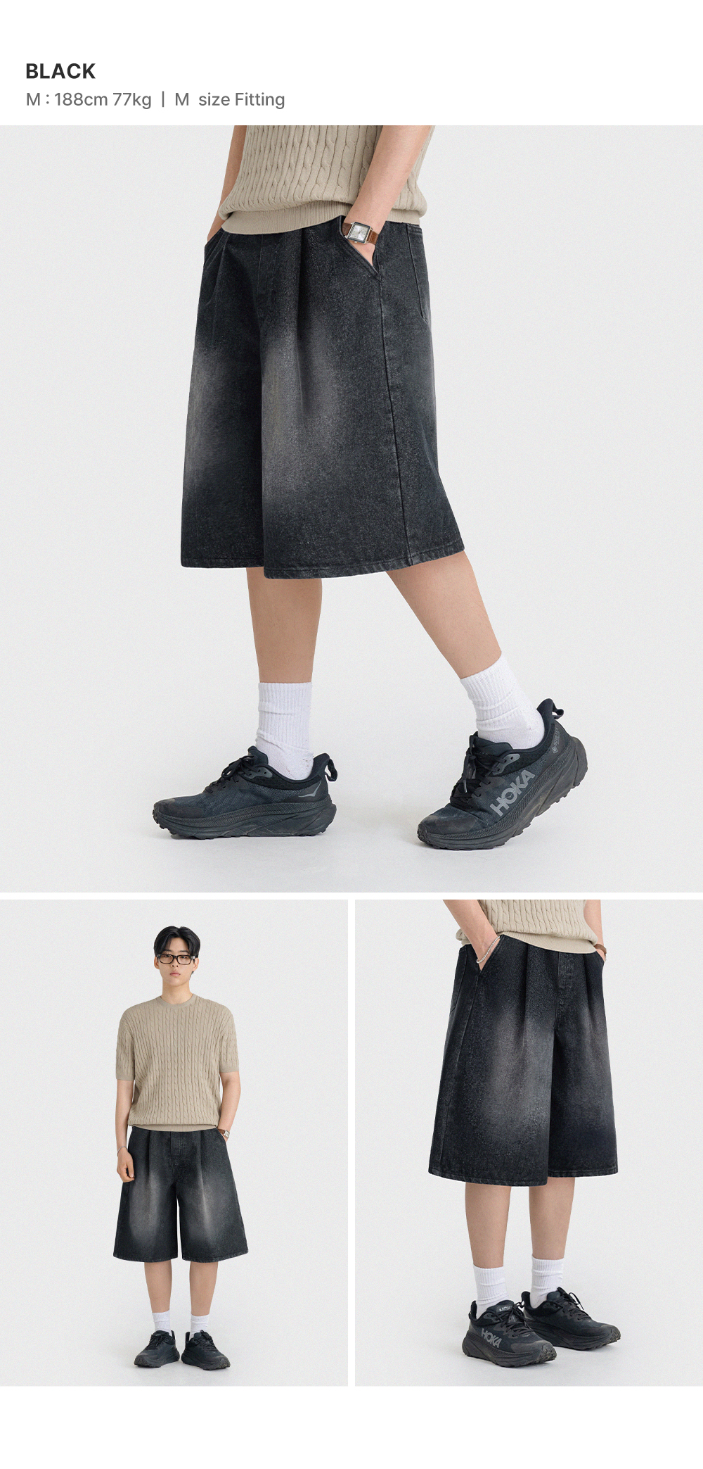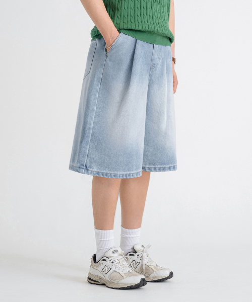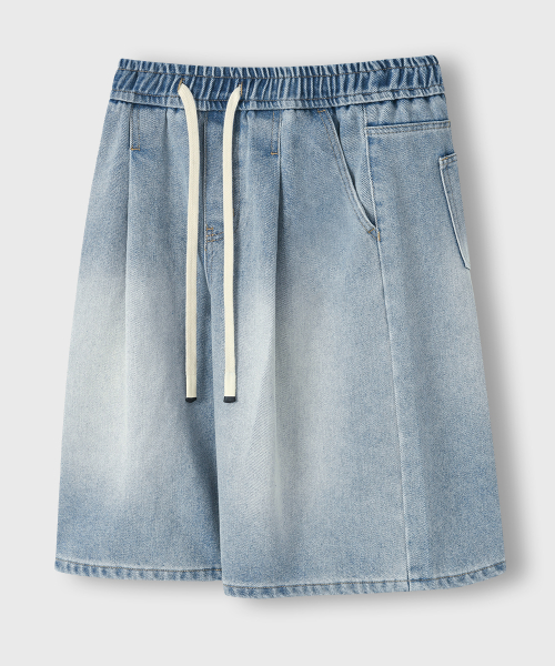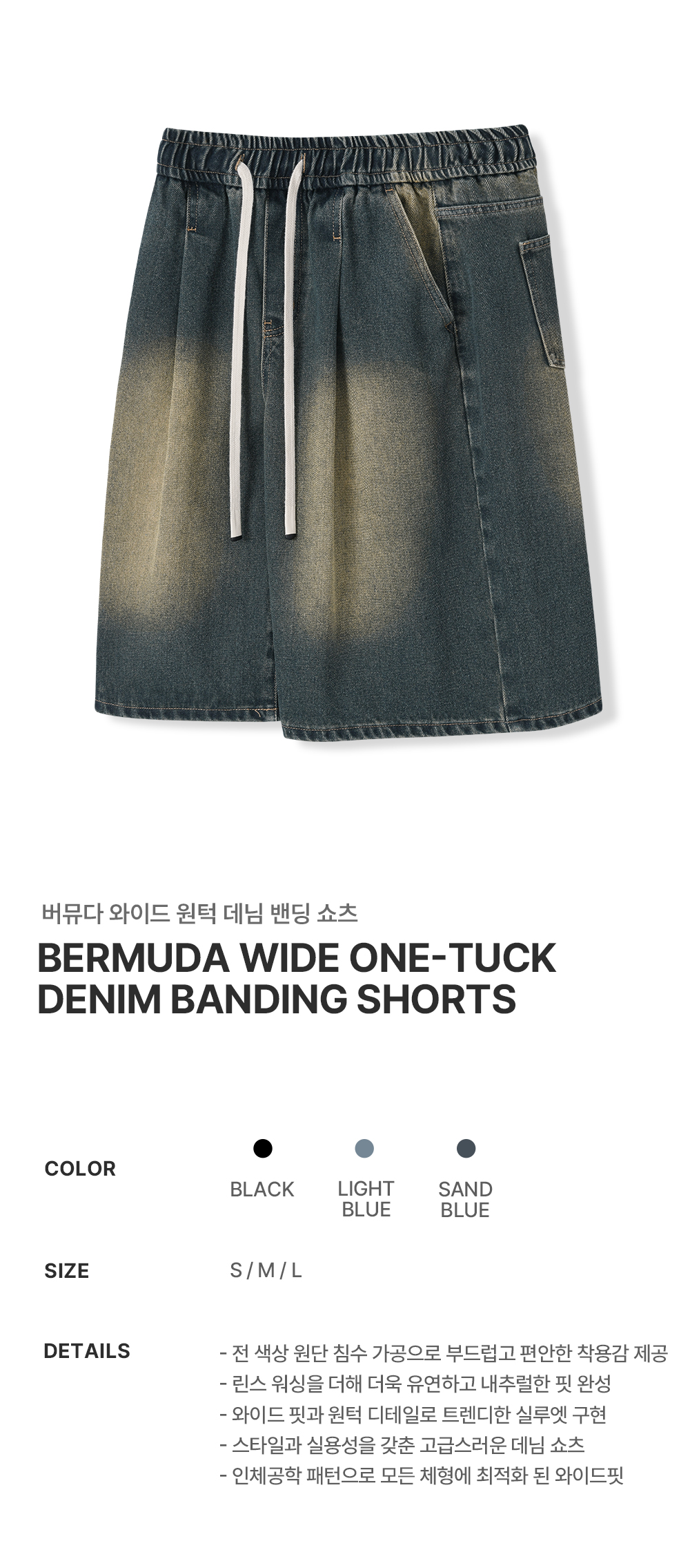 버뮤다 와이드 원턱 데님 밴딩 쇼츠_3COLOR