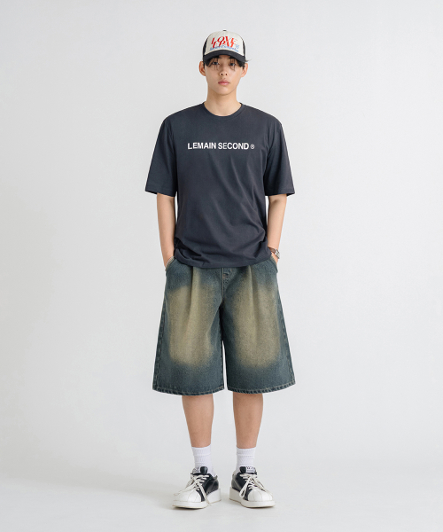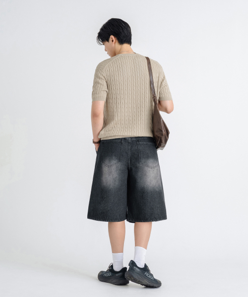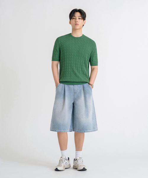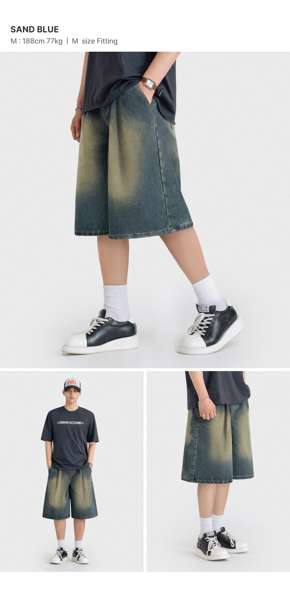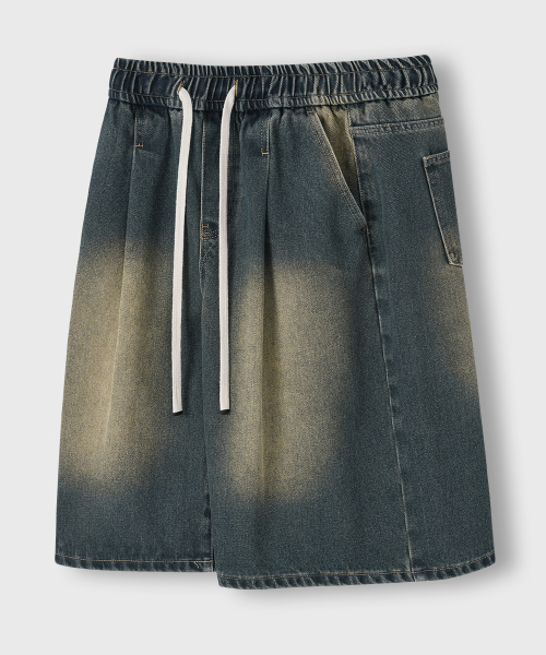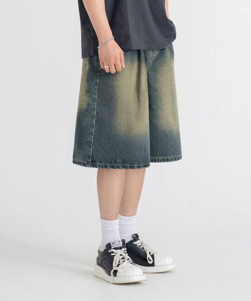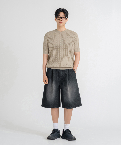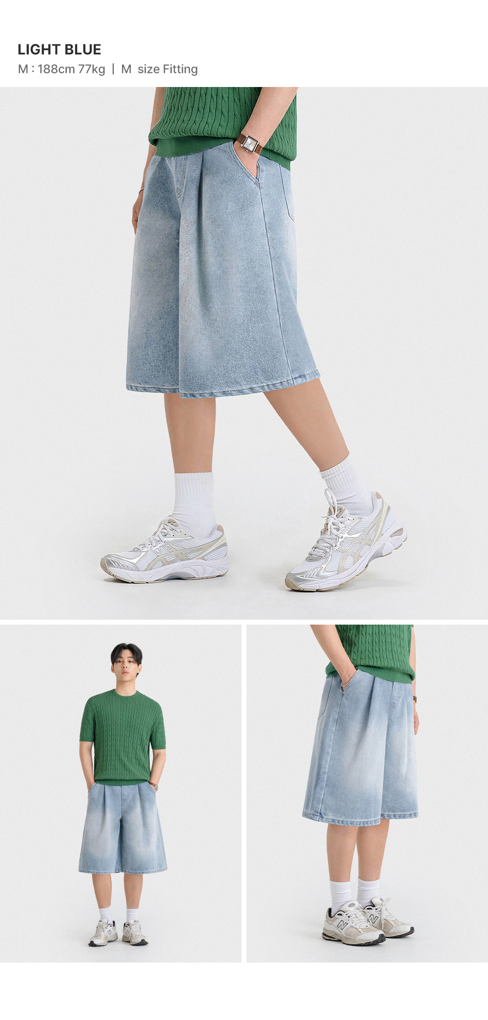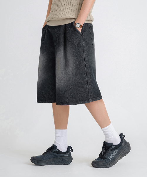버뮤다 와이드 원턱 데님 밴딩 쇼츠_3COLOR