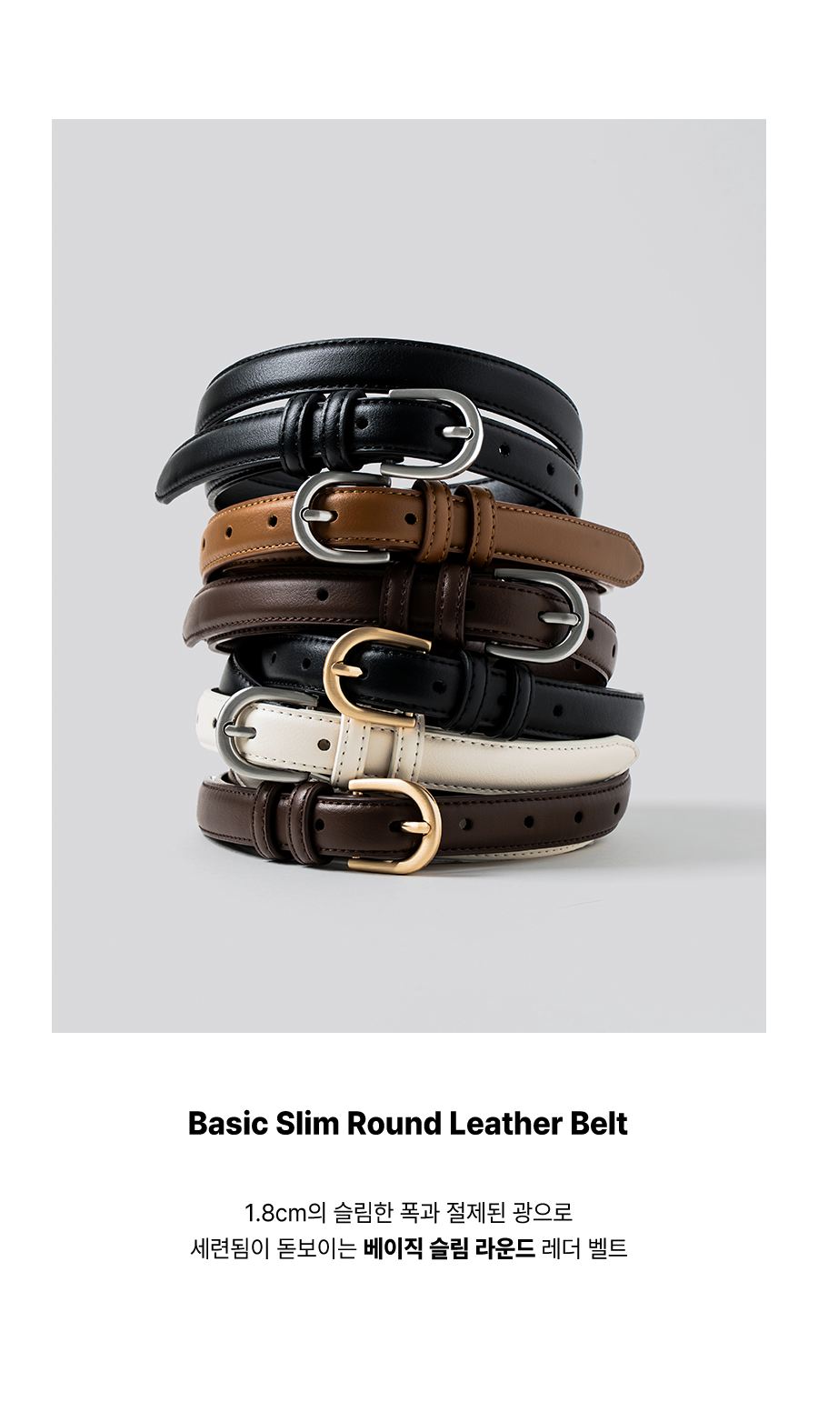 베이직 슬림 라운드 레더 벨트_6color