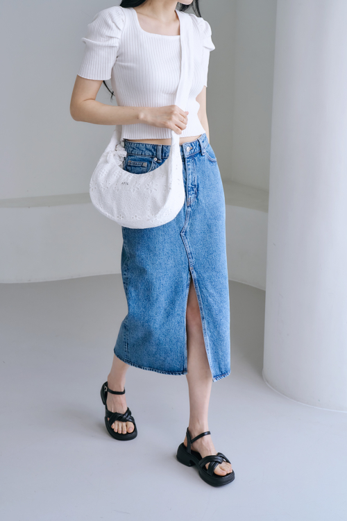 데님 데이지 매듭 숄더백_[다크블루]