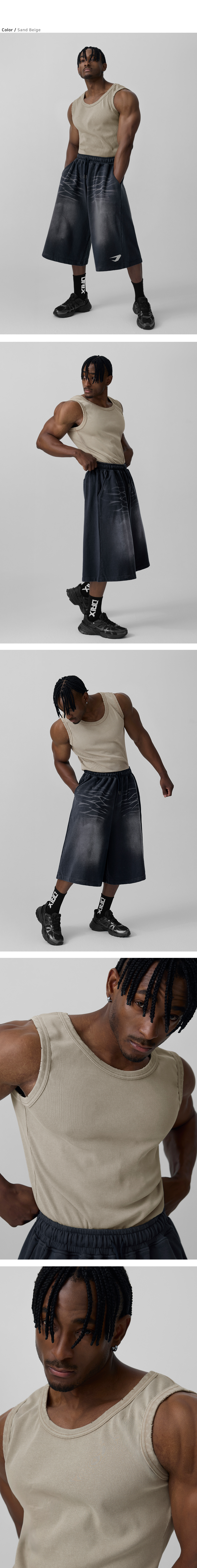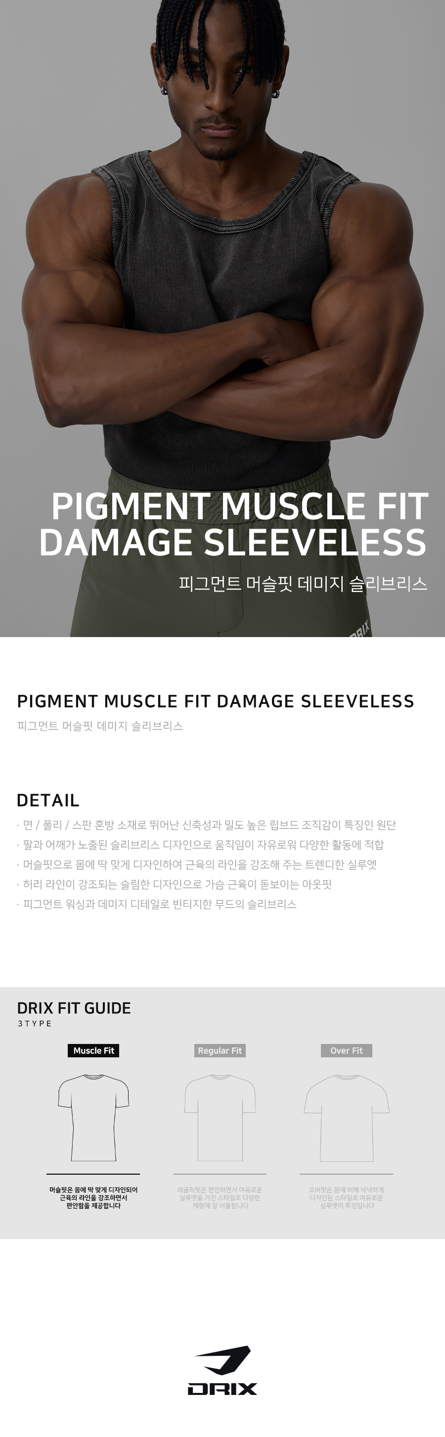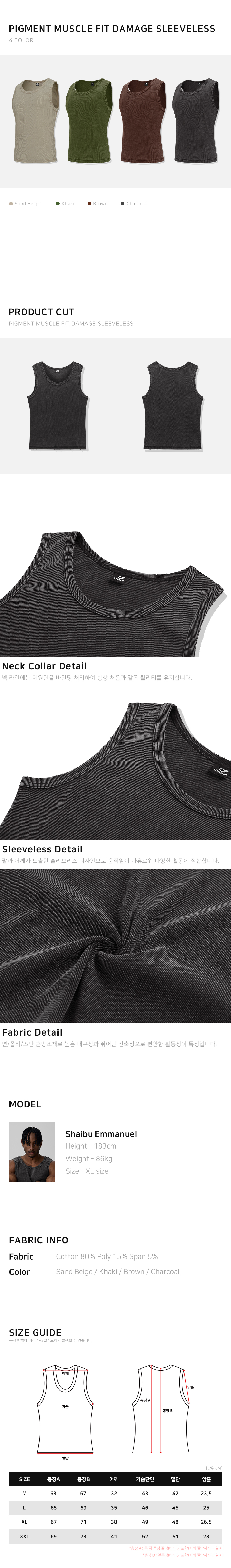 피그먼트 머슬핏 데미지 슬리브리스_4color