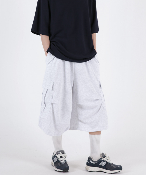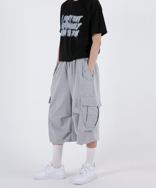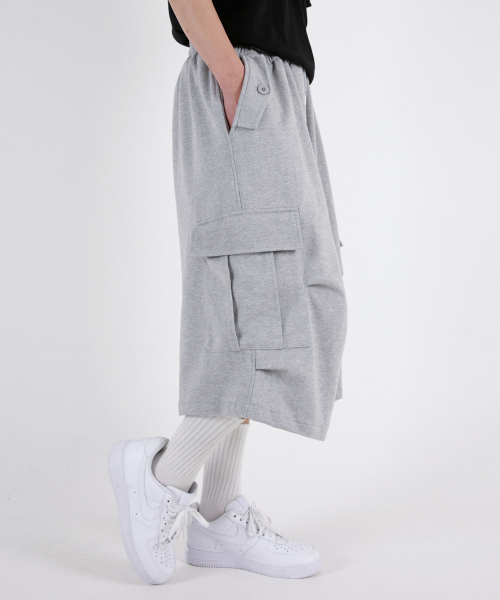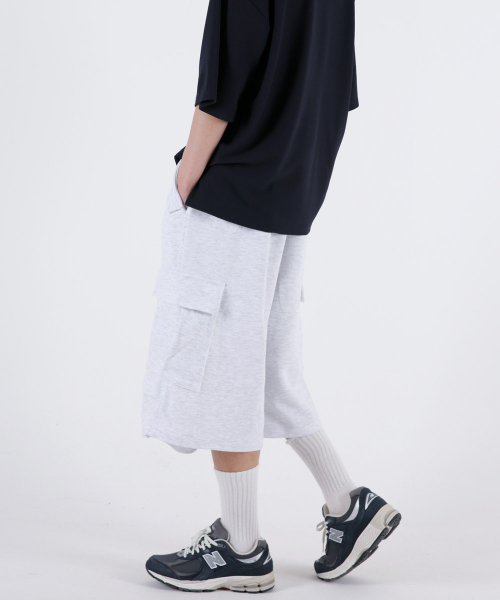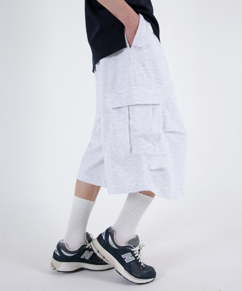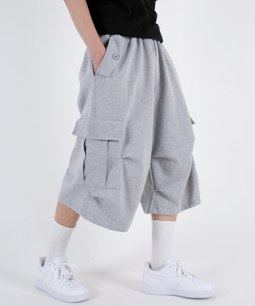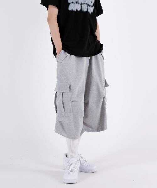 버뮤다 와이드 카고 스웨트 쇼츠[BLACK]