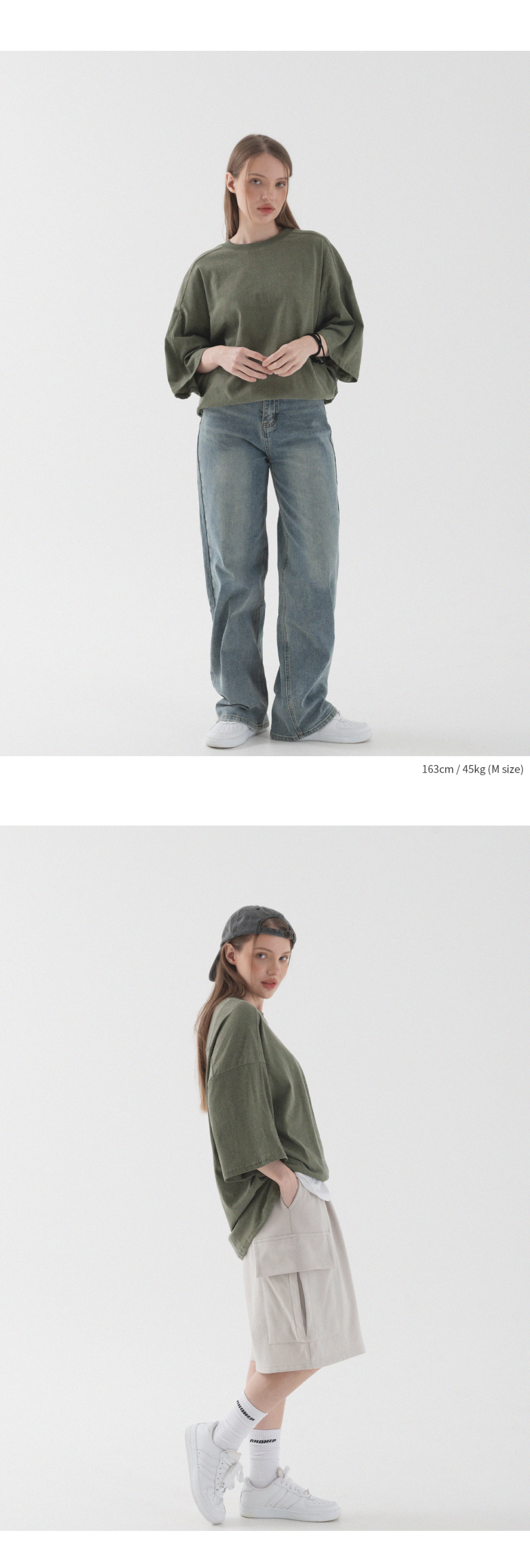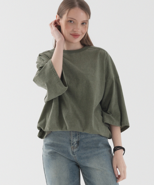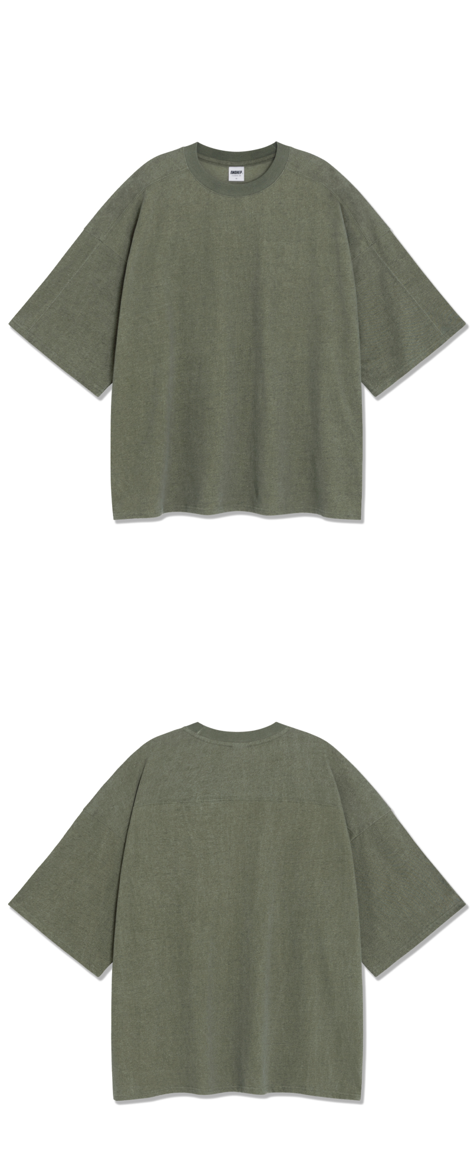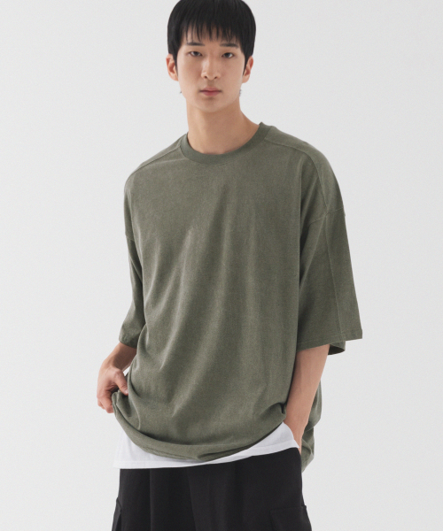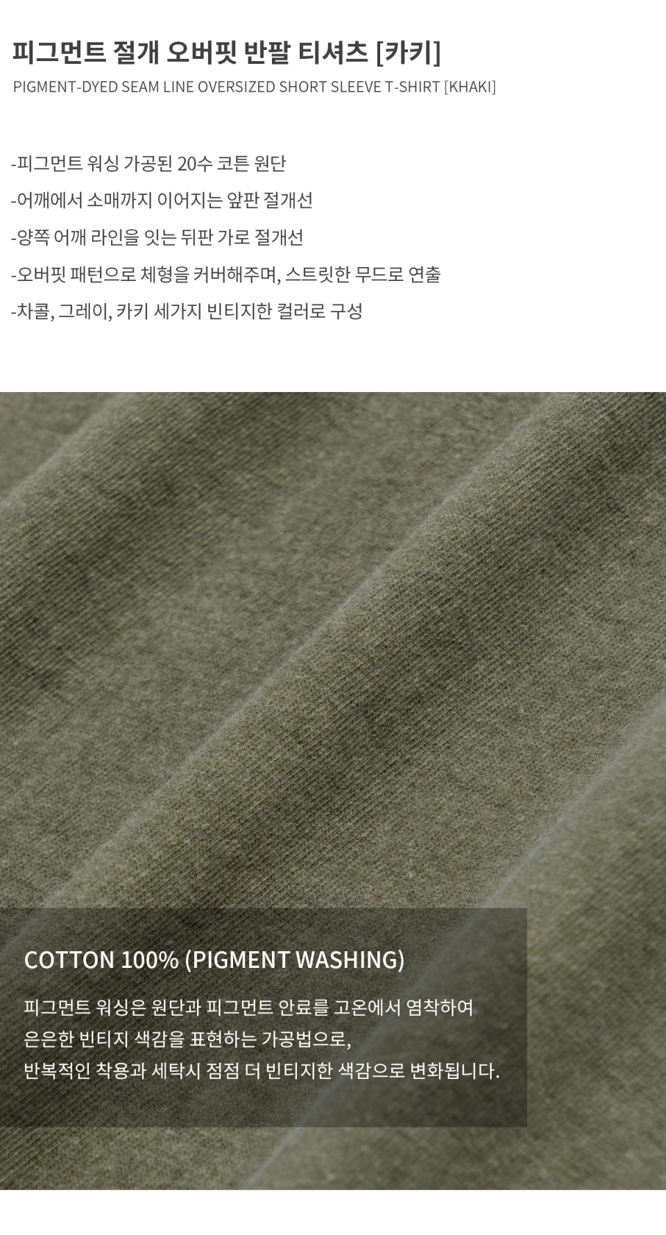 피그먼트 절개 오버핏 반팔 티셔츠 (카키)