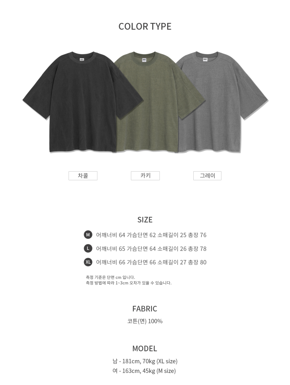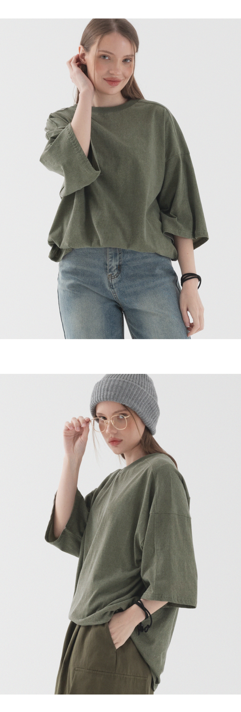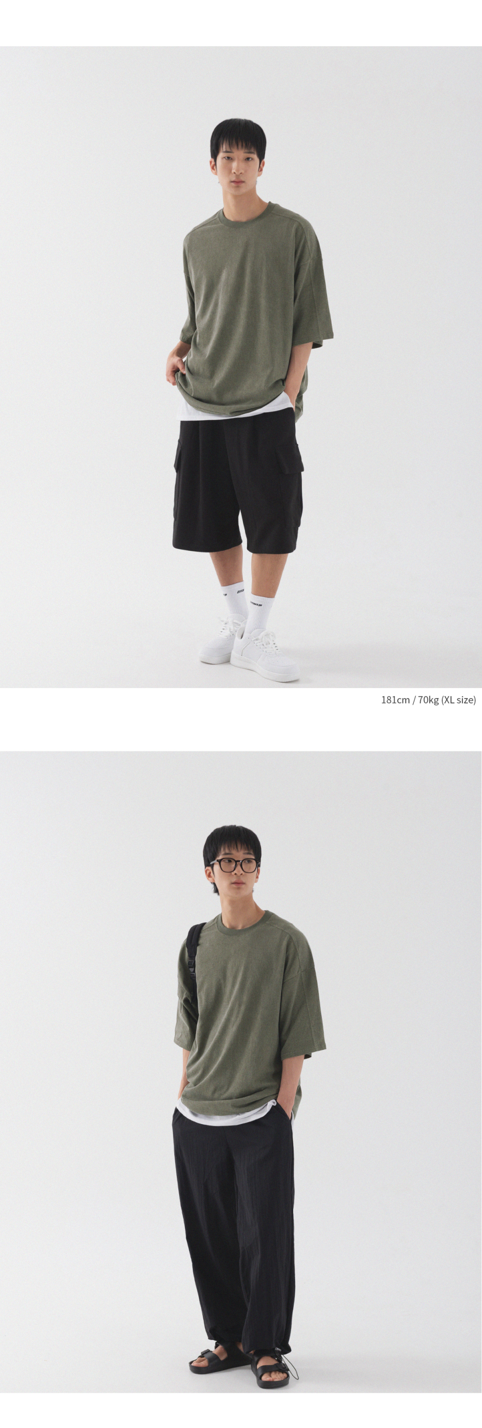 피그먼트 절개 오버핏 반팔 티셔츠 (카키)