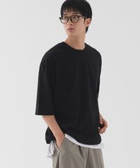 쿨 오버핏 스트링 반팔 티셔츠 (블랙)