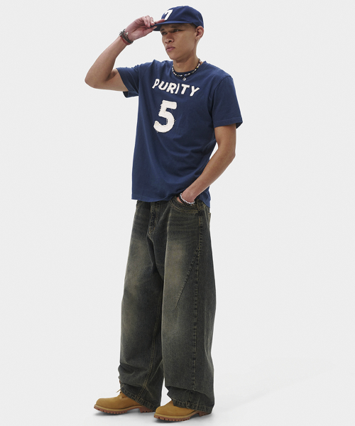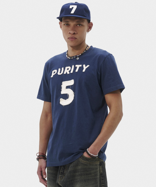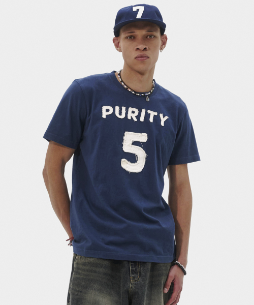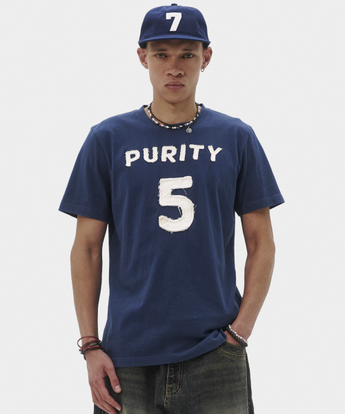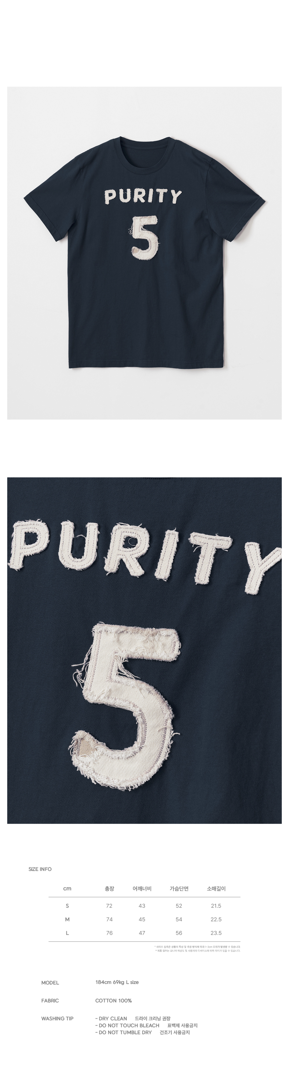퓨리티 아플리케 슬림 티셔츠 (빈티지네이비)