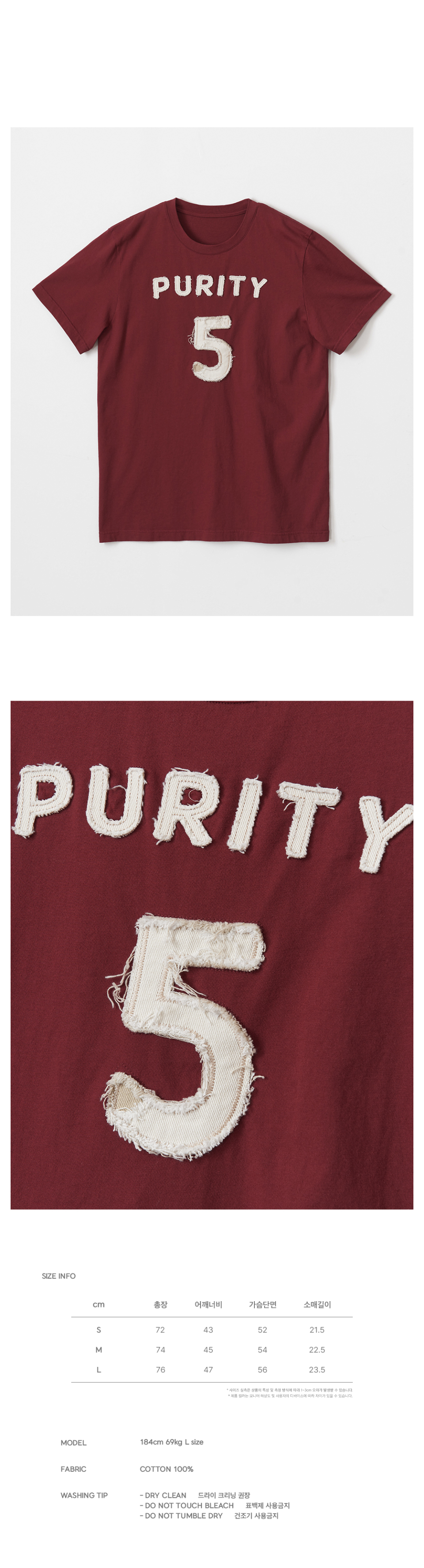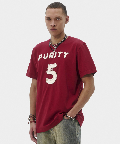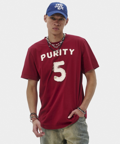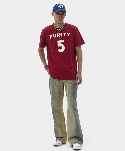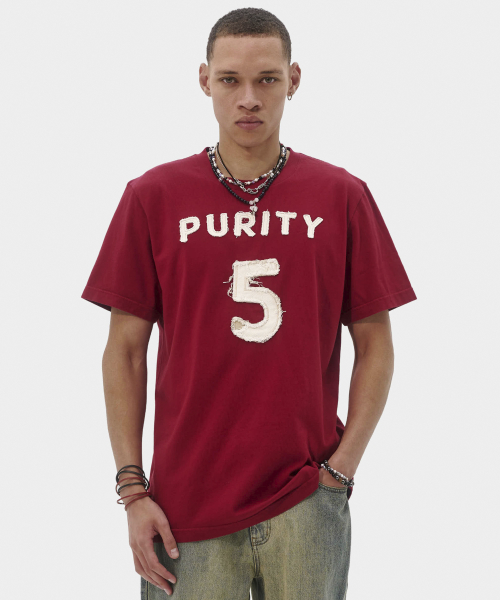 퓨리티 아플리케 슬림 티셔츠 (버건디)