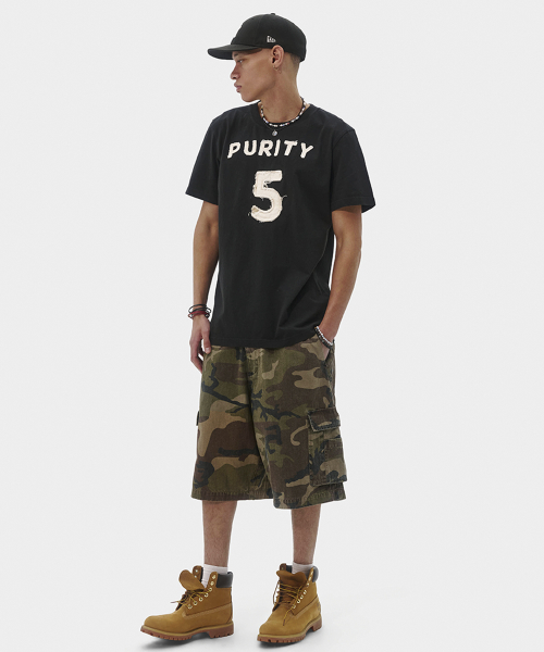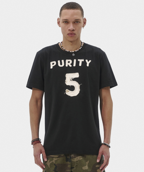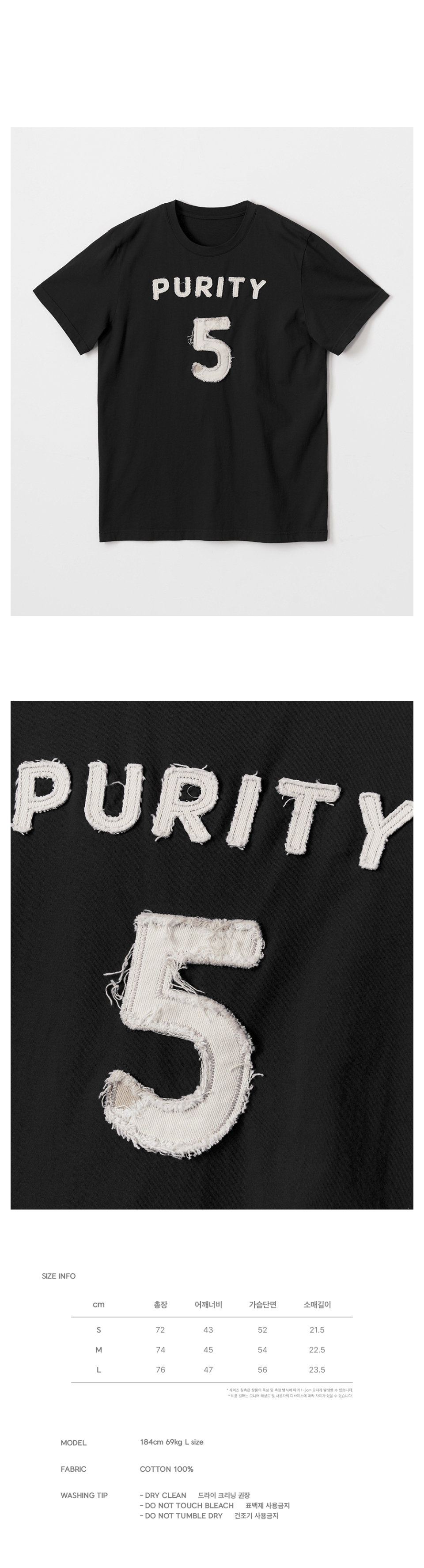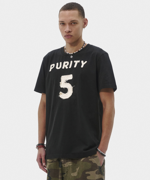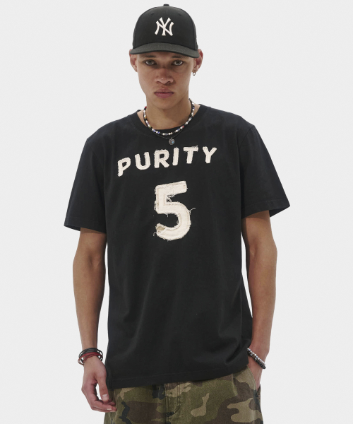 퓨리티 아플리케 슬림 티셔츠 (블랙)