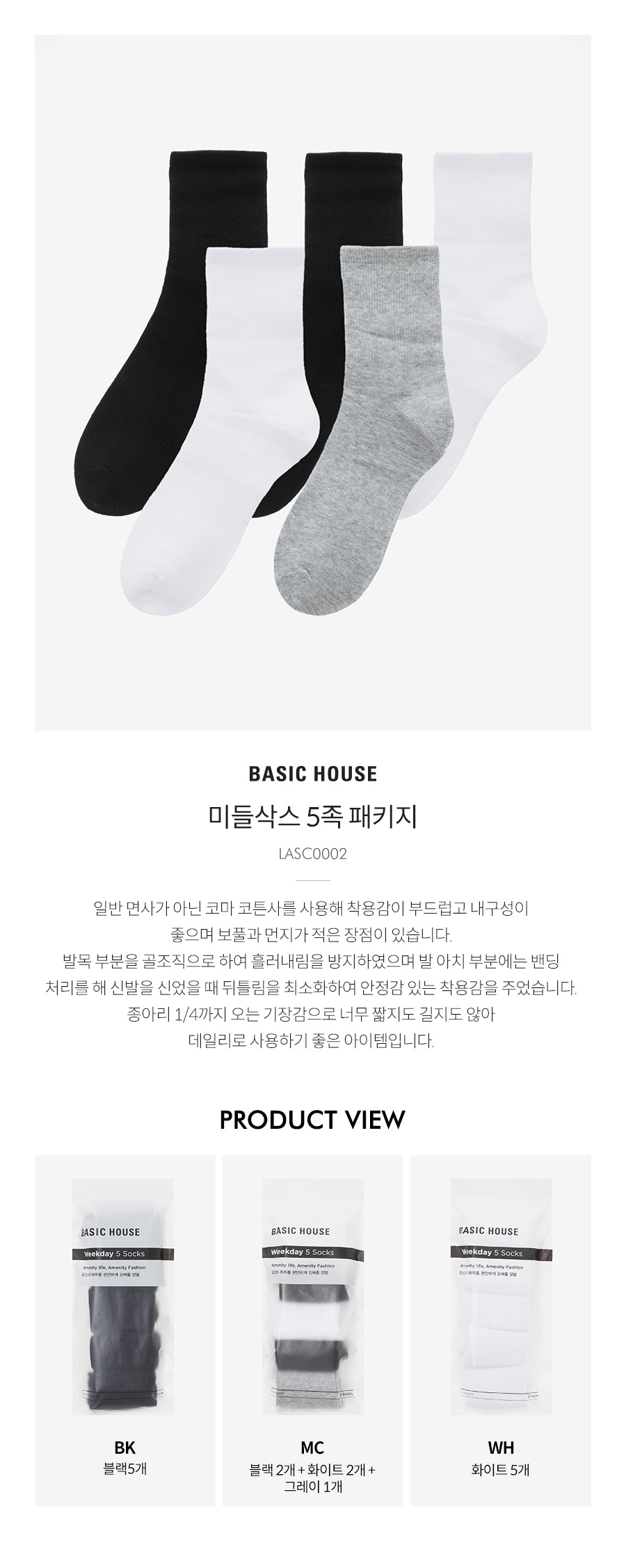 [5PACK] 미들 삭스 5족 패키지 [믹스컬러] LASC0002