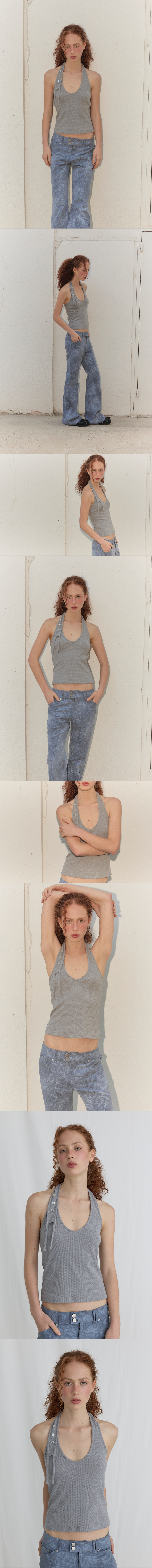 쉘 버튼 홀터 슬리브리스 - 그레이