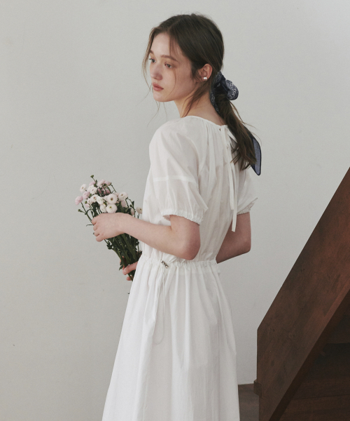 백 리본 퍼프 원피스 아이보리
