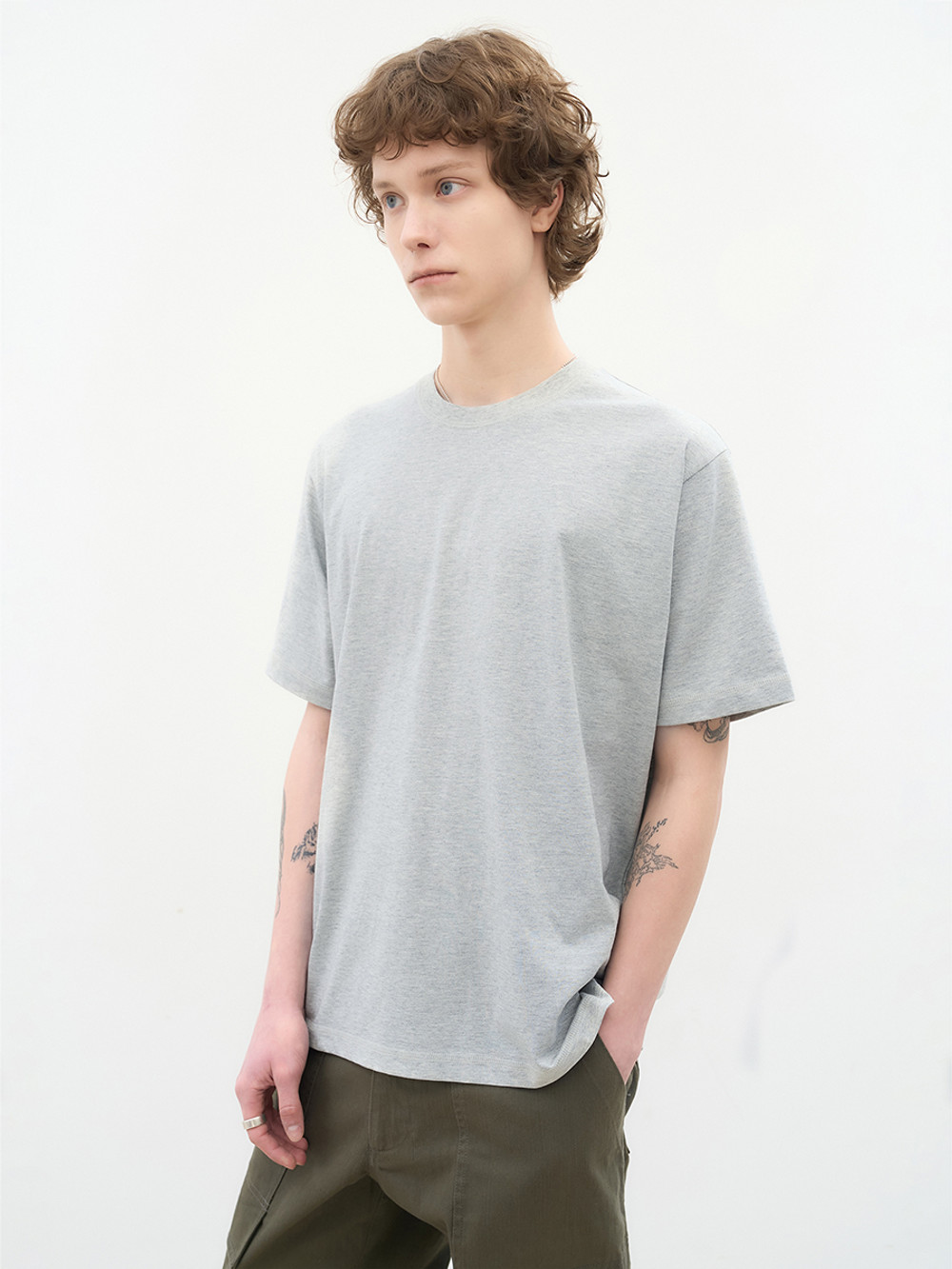 두 가지 이상의 컬러가 섞인 멜란지 원사로 제작한 에센셜 티셔츠입니다. 자연스럽고 섬세한 컬러 블렌딩을 통해 깊이 있는 색감을 표현했으며, 텐타·텀블 가공과 바이오 워싱으로 부드러운 터치감을 더했습니다. 20수 코튼 원단은 탄탄한 착용감을 제공하며, 네크라인과 소매, 몸판 끝단은 톤온톤 커버스티치로 마감해 완성도를 높였습니다. 네크라인 뒤쪽에는 애프터프레이 심볼 자수를 더해 감각적인 계절감과 은은한 포인트를 전합니다.