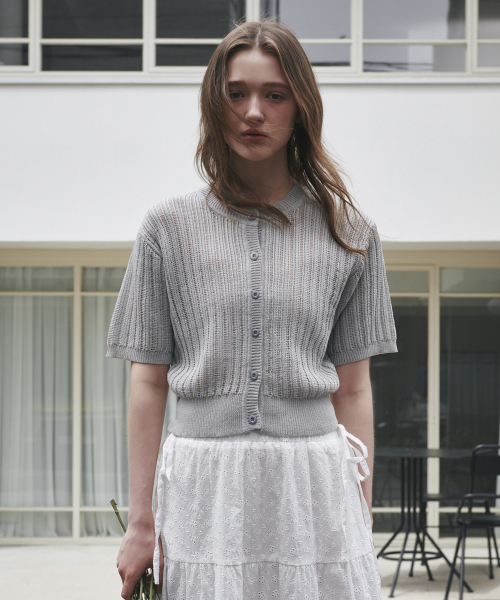 펀칭 라운드 니트 가디건 그레이