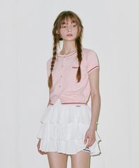 베이직 스트라이프 하프 가디건 핑크