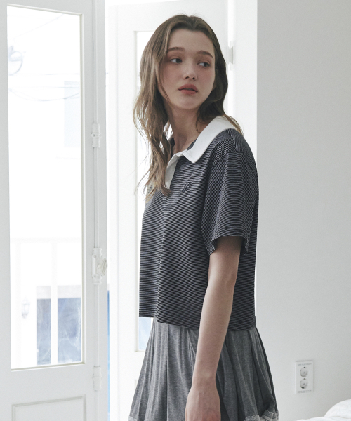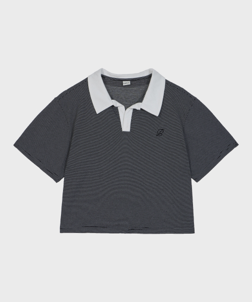 스트라이프 배색 카라티 블랙