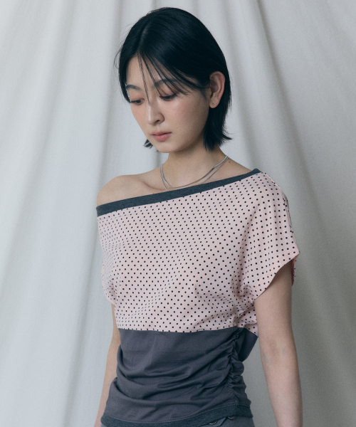 [라라진 PICK] L17 DOT ONE-SHOULDER TOP(PINK)