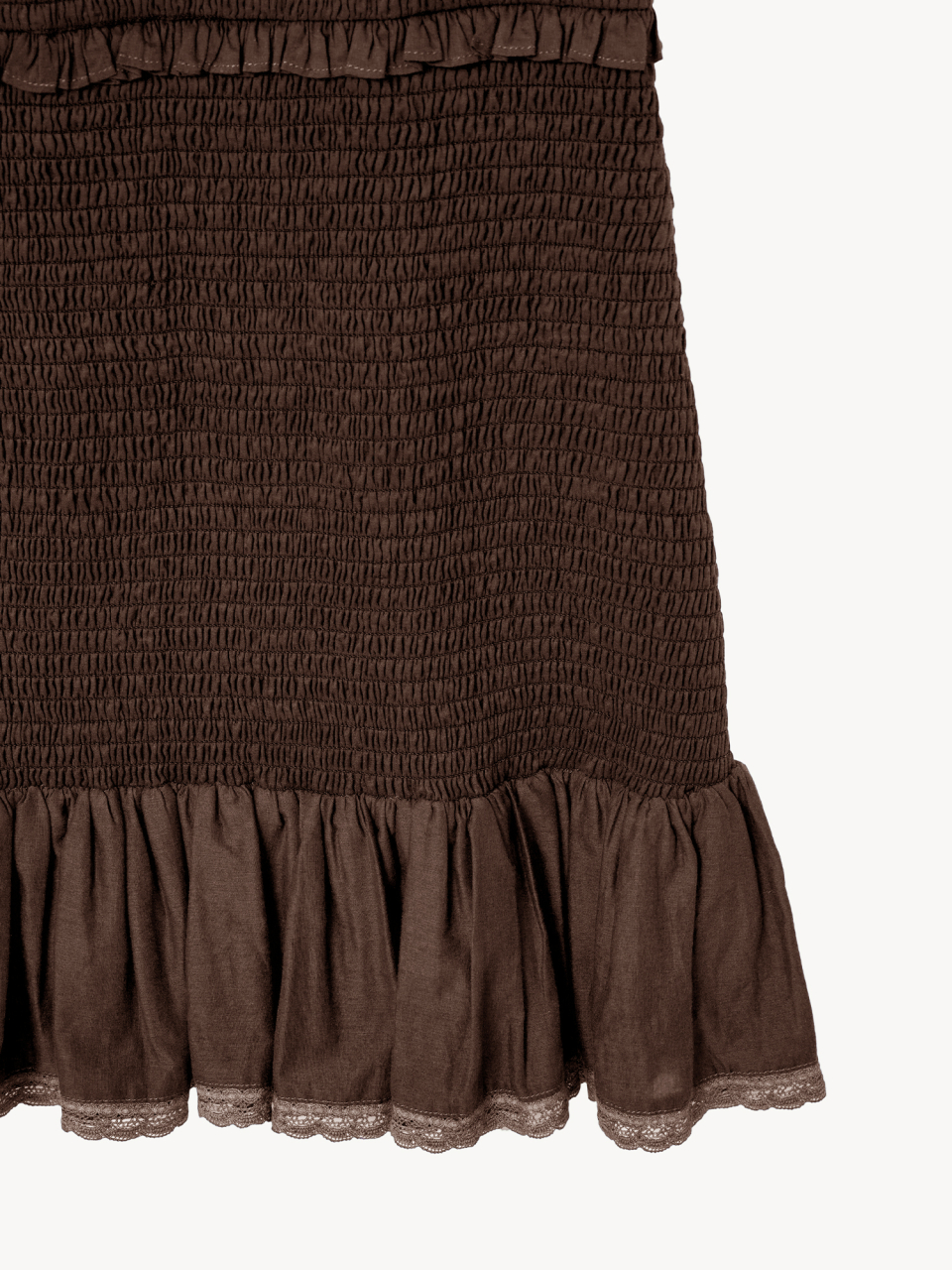 윗단과 밑단에 겹겹이 더해진 프릴 디테일은