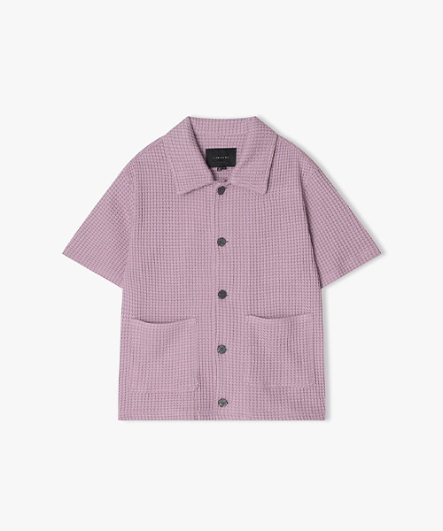 [25SS] LLM31511 블랙 와플조직 오픈카라 반팔 셔츠