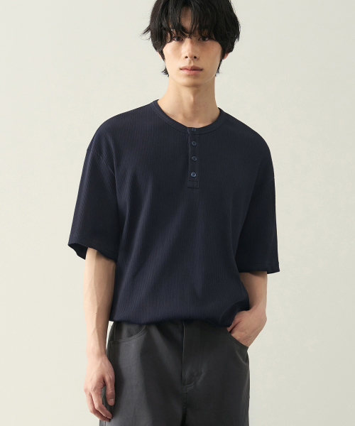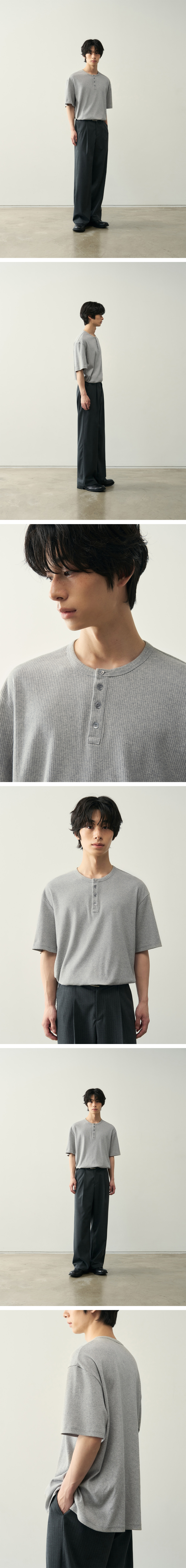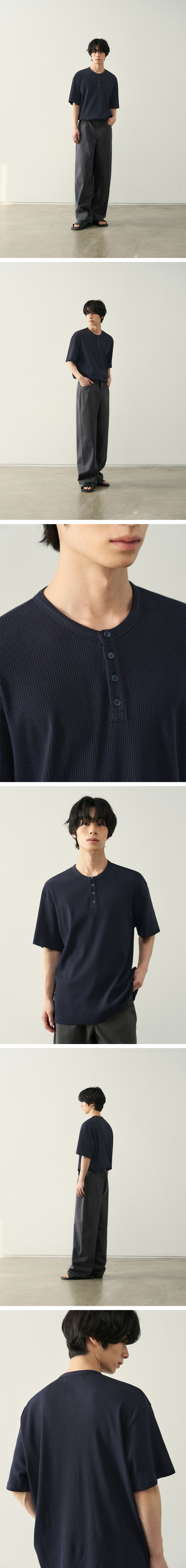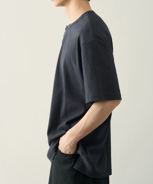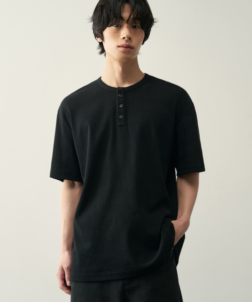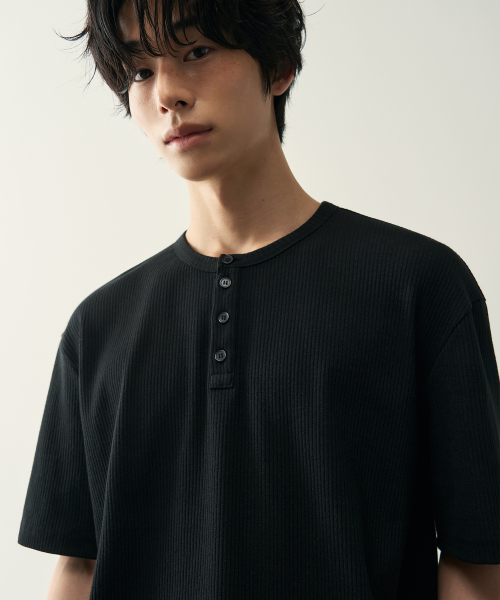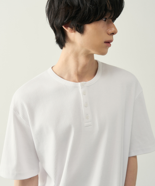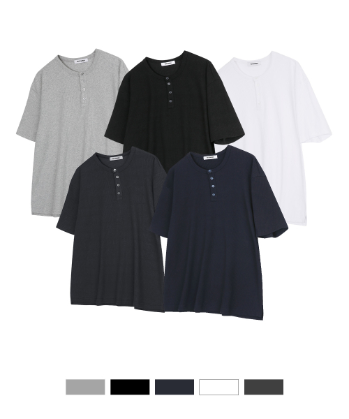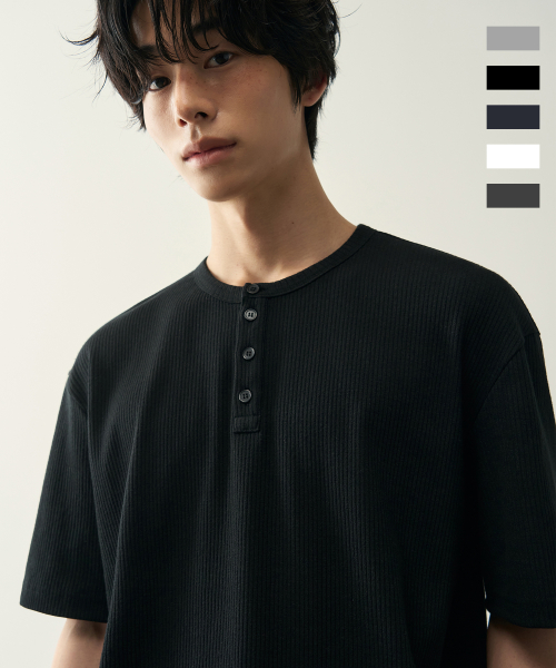 리브드 헨리넥 하프 티셔츠 [ 5 COLOR ]