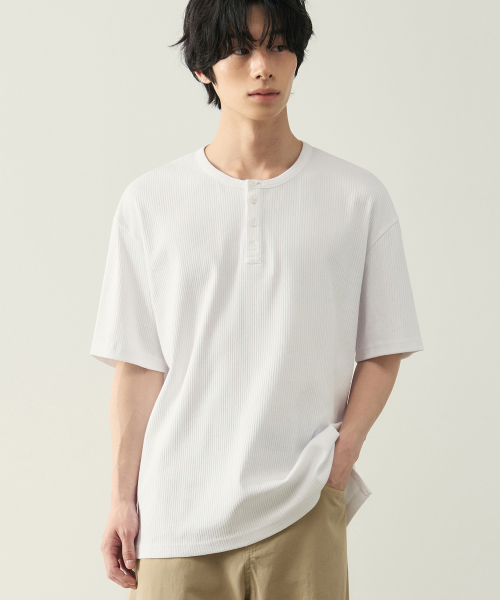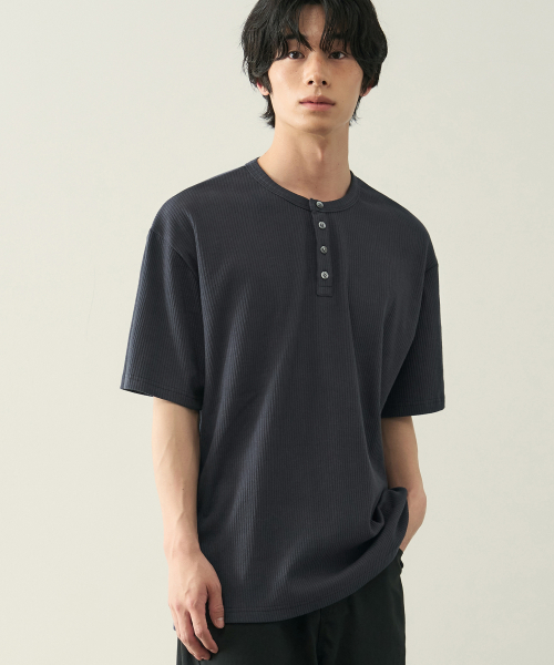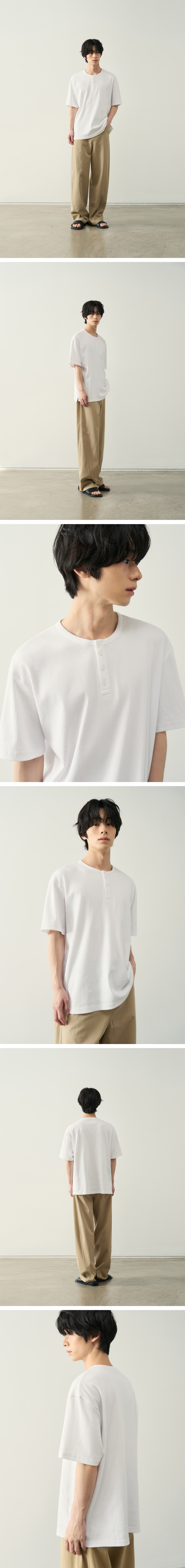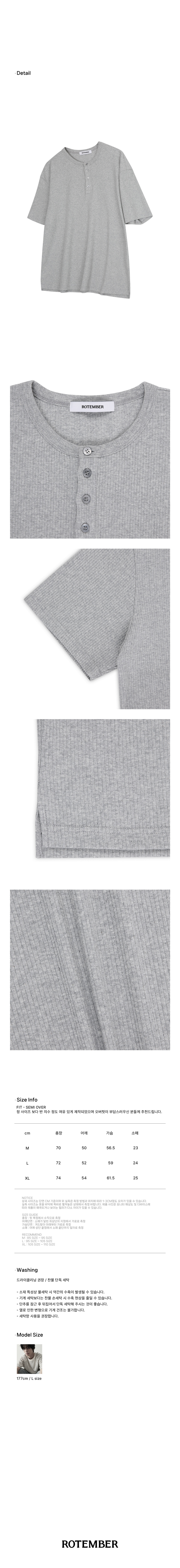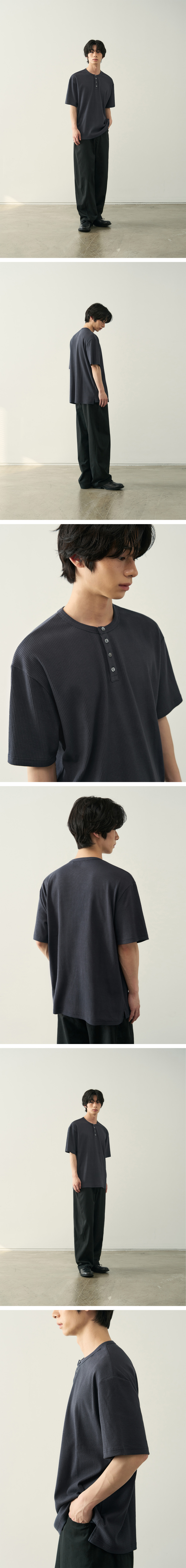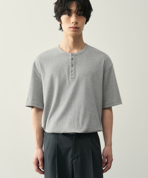 리브드 헨리넥 하프 티셔츠 [ 5 COLOR ]