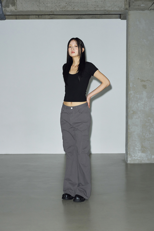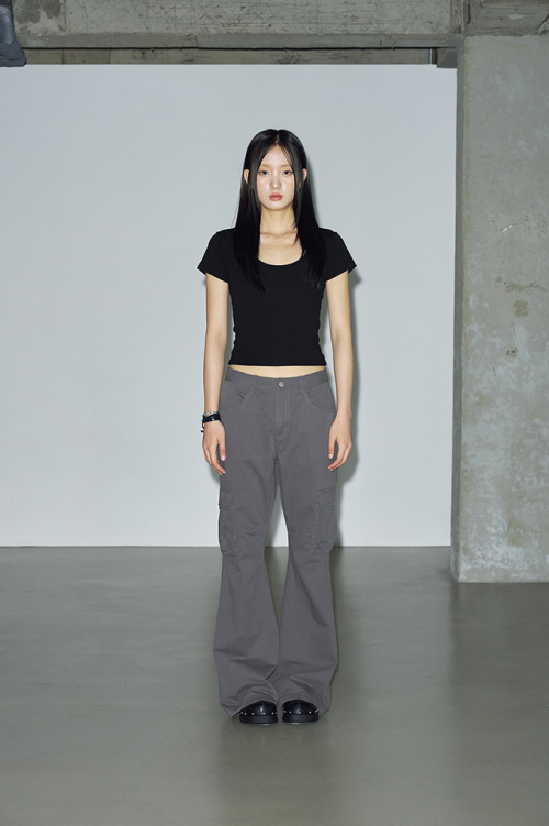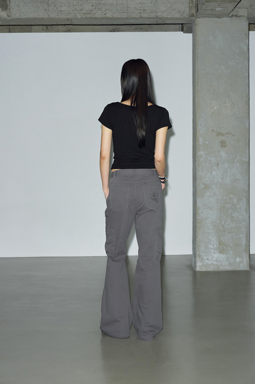 빈티지한 피그먼트 워싱이 돋보이는 부츠컷 카고 팬츠입니다.