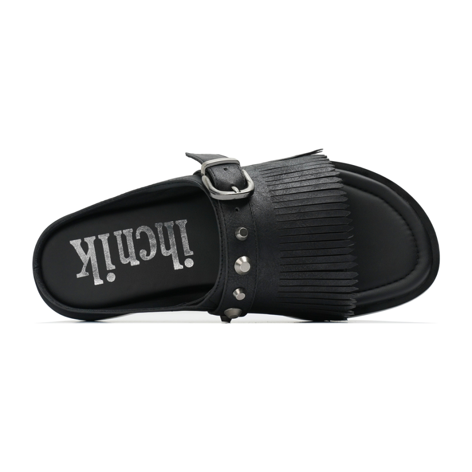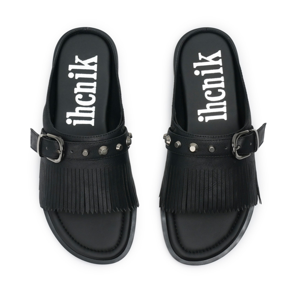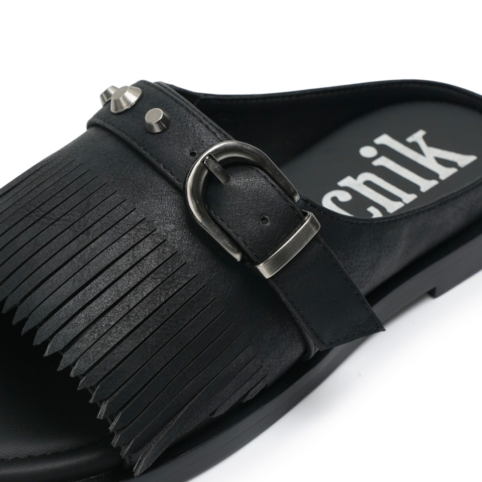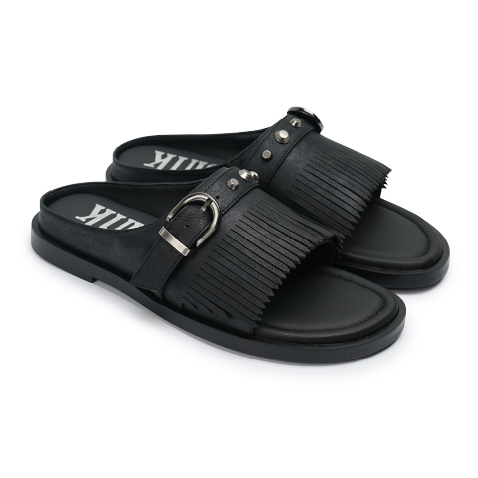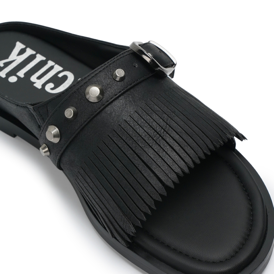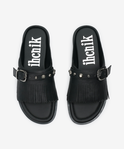 r. 909 tassel stud slides / black
