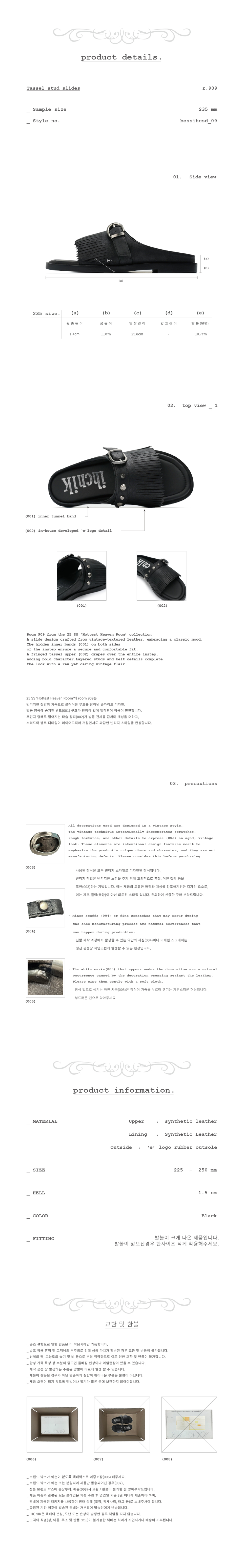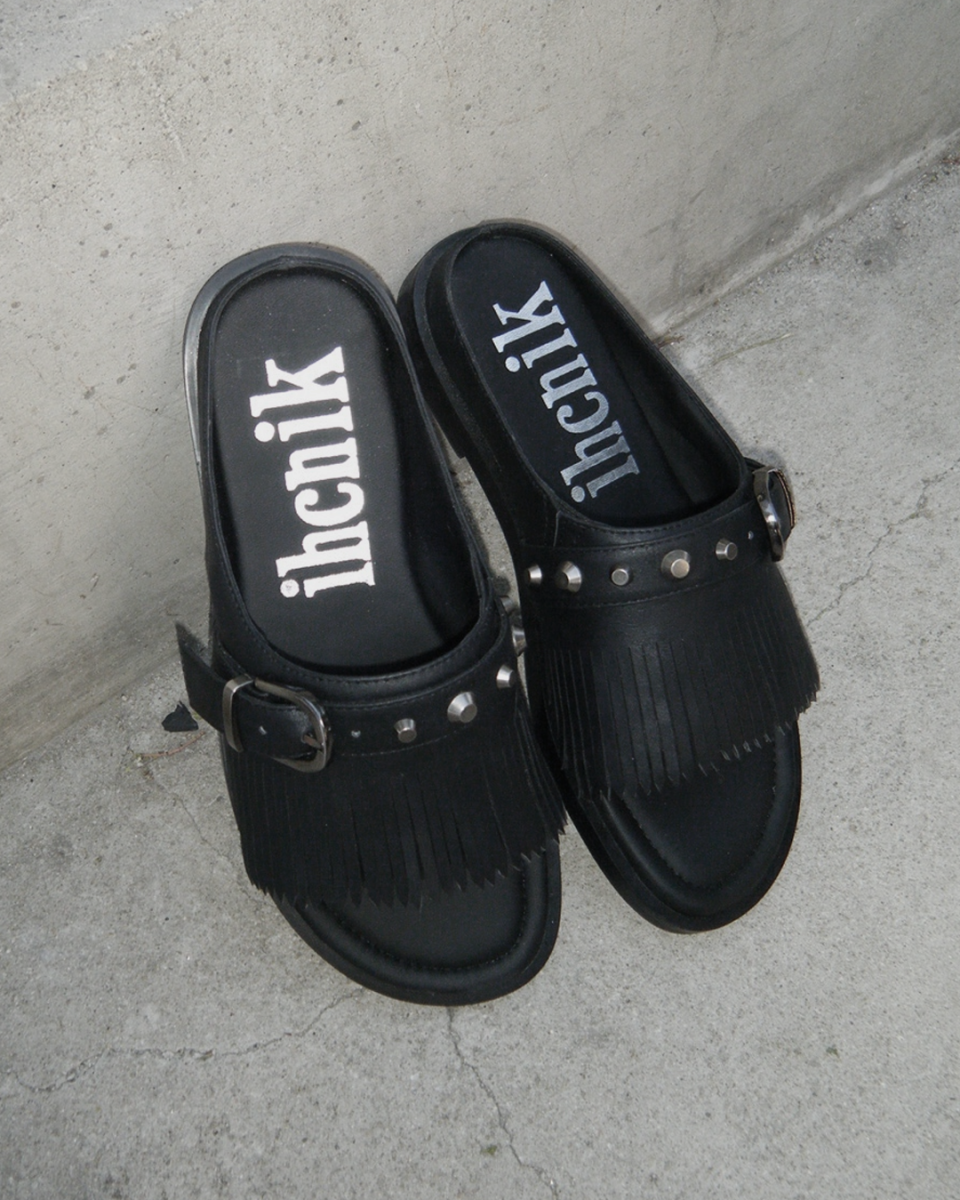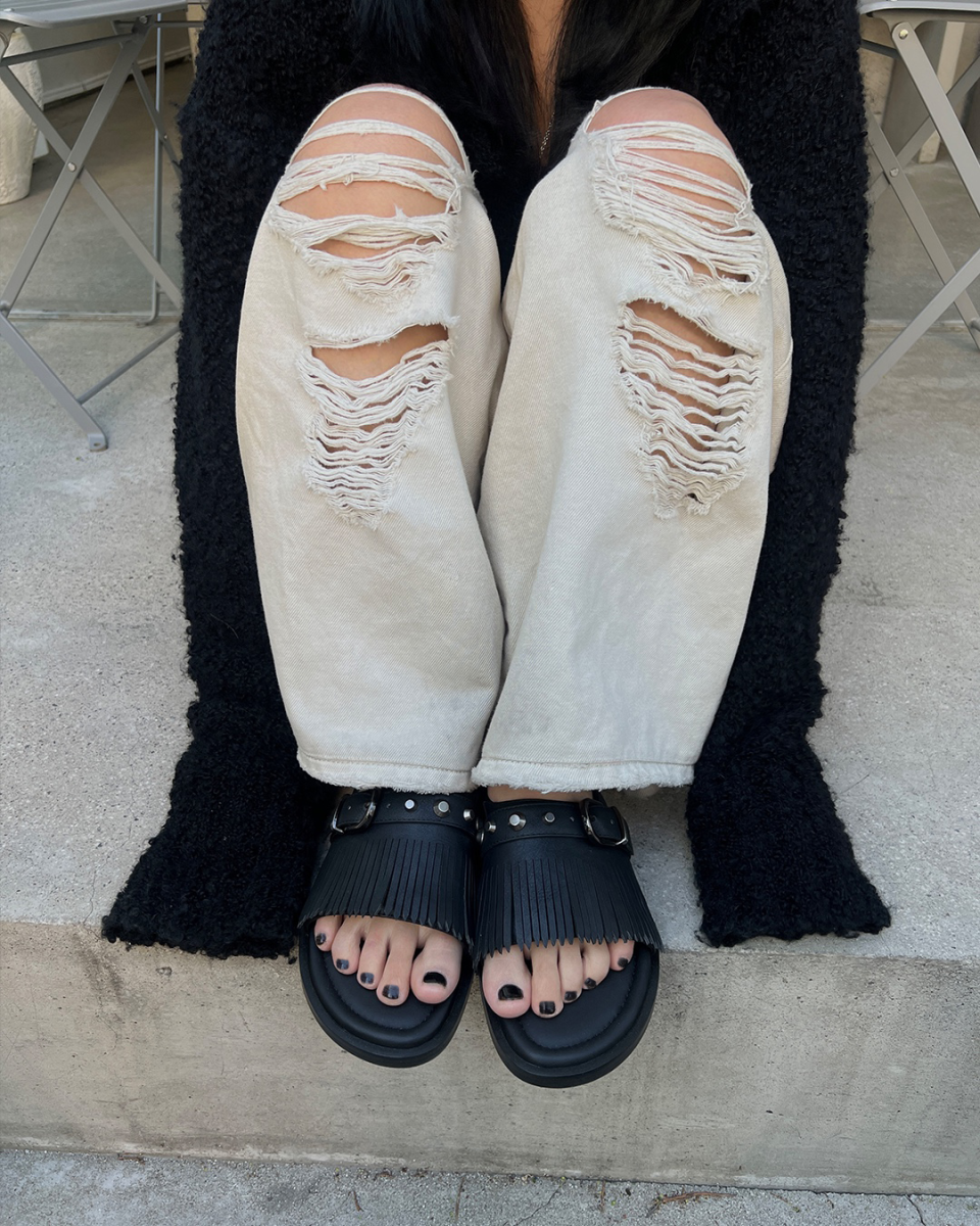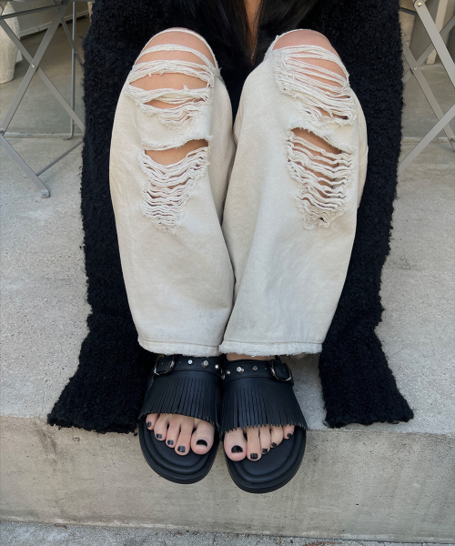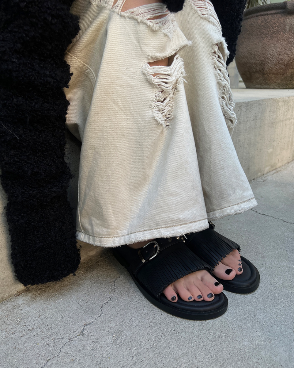 r. 909 tassel stud slides / black