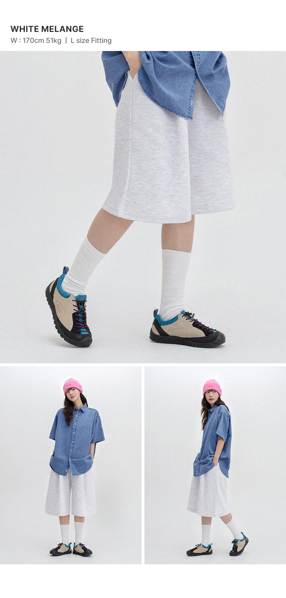 버뮤다 와이드 원턱 데님 밴딩 쇼츠_3COLOR