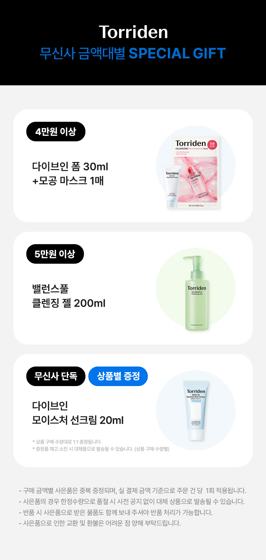 토리든(TORRIDEN)은 'YOUR SKIN IS OUR PLANET'이라는 철학 아래 당신의 피부를 또 하나의 환경과 같이 지키고자 합니다.