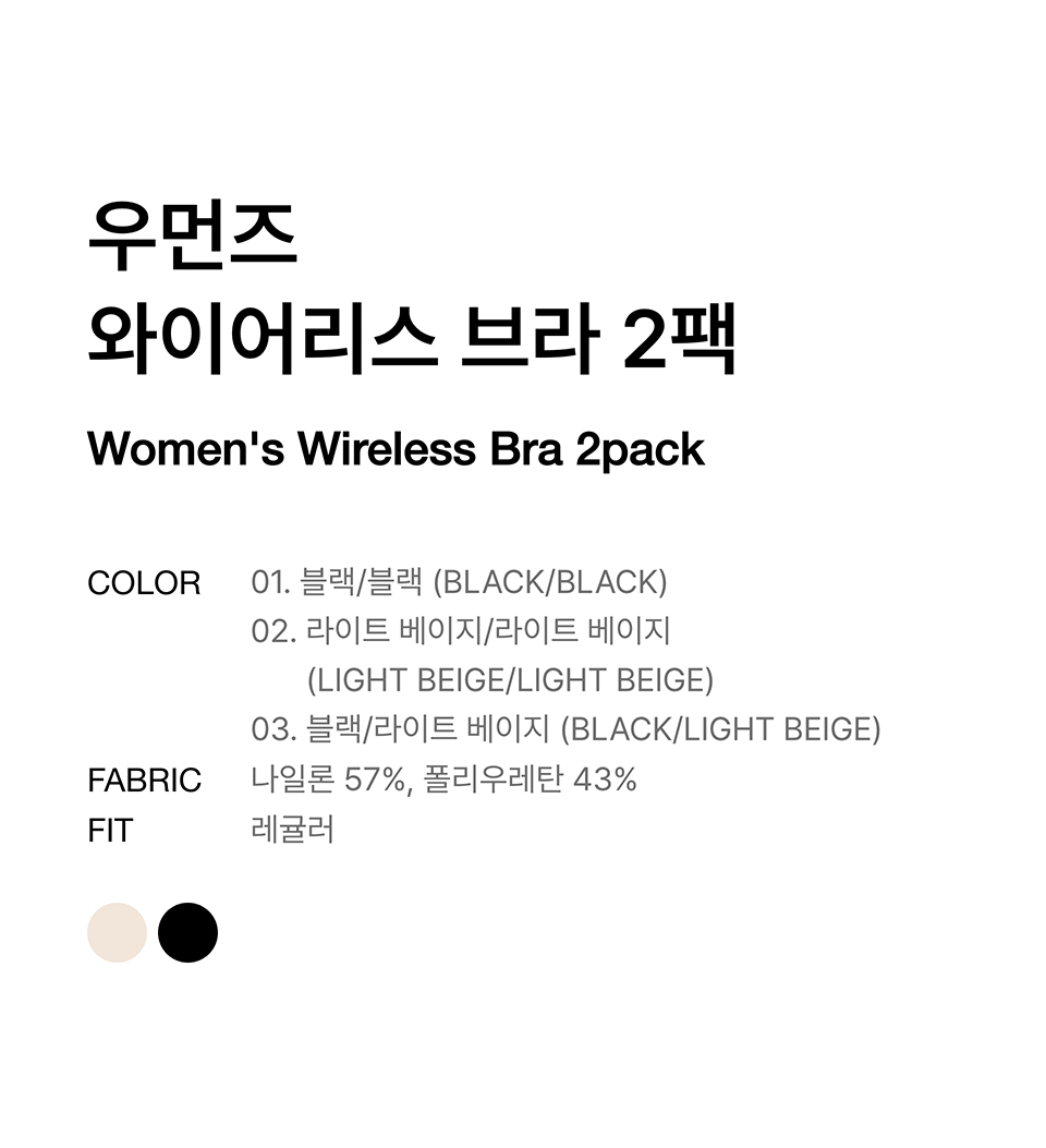 우먼즈 와이어리스 브라 2팩