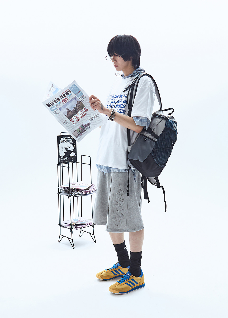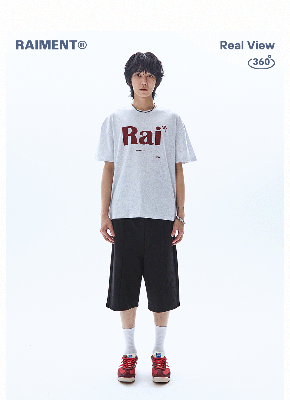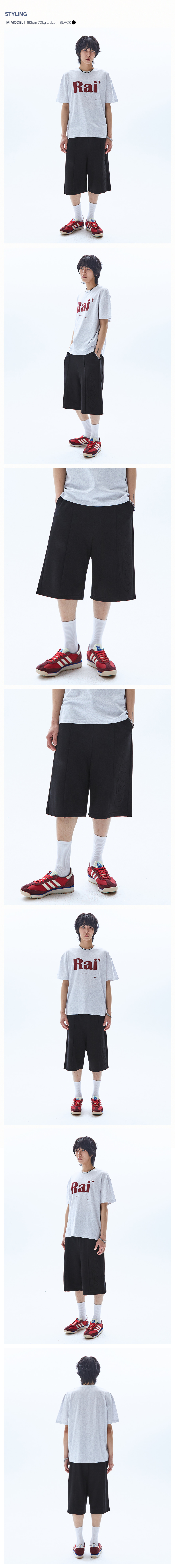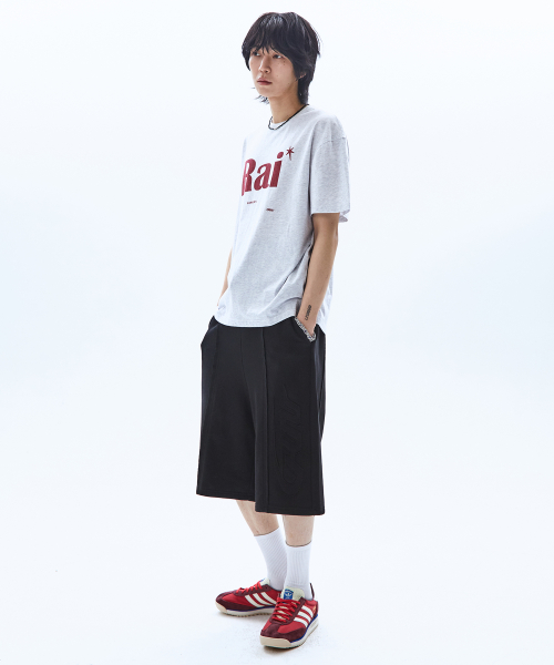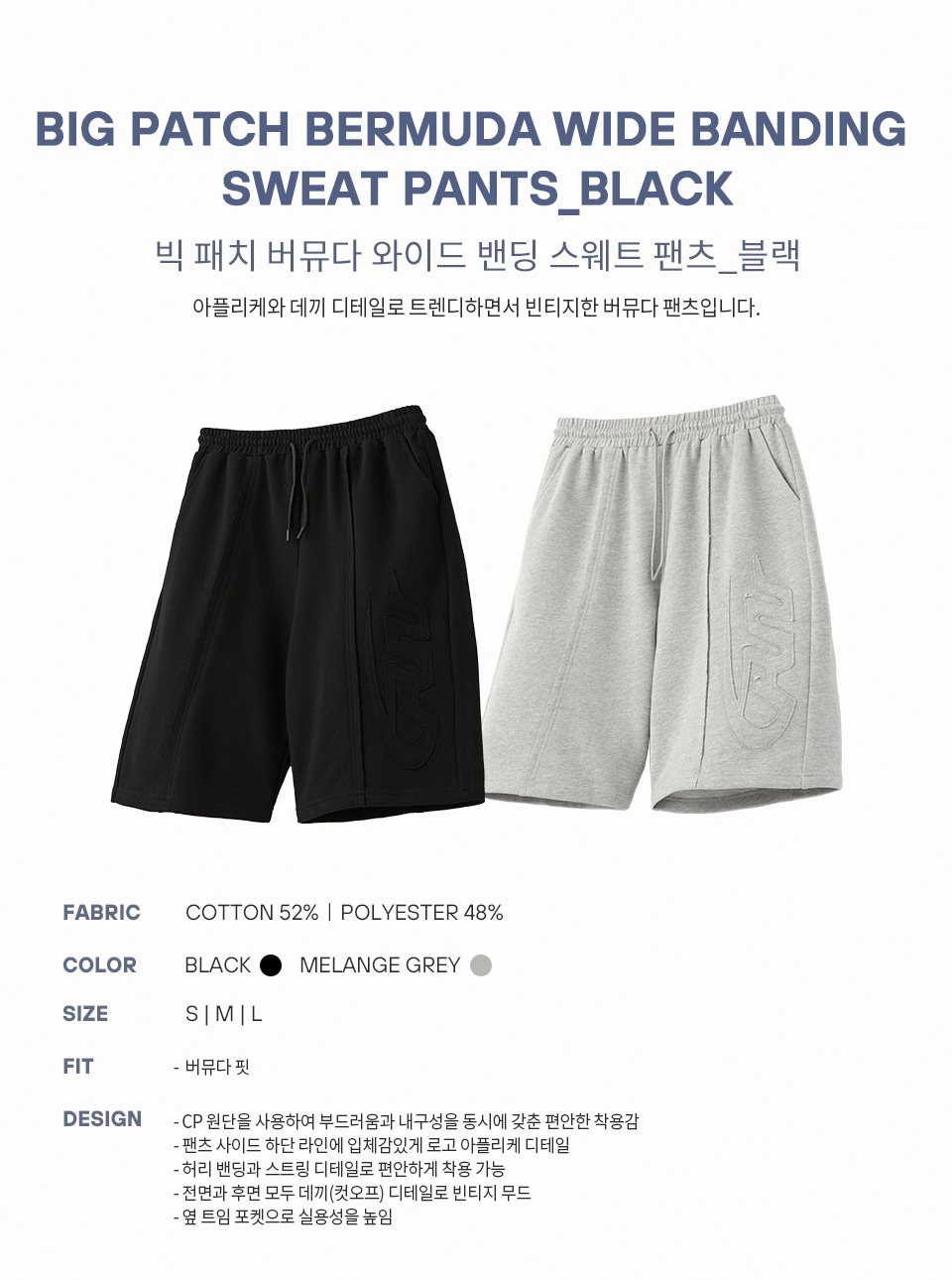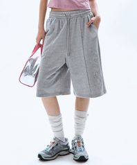빅 패치 버뮤다 와이드 밴딩 스웨트 팬츠_메란지 그레이