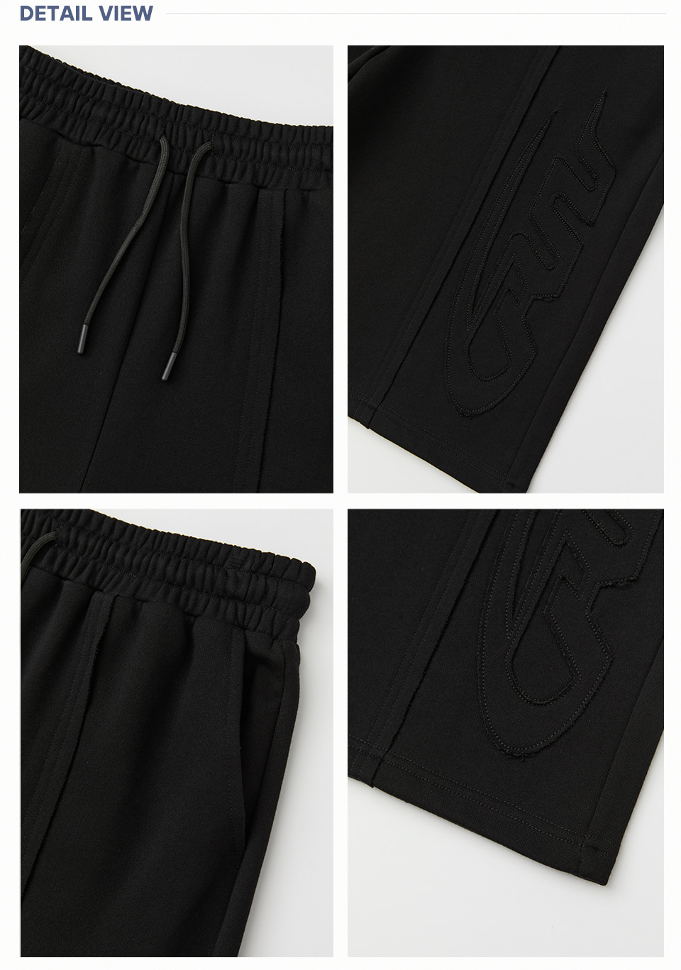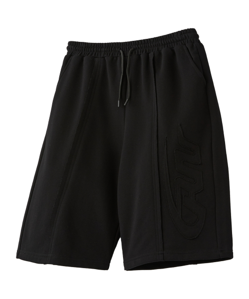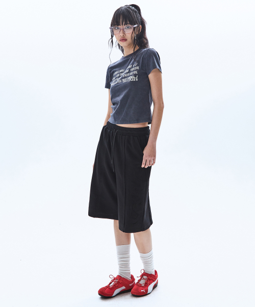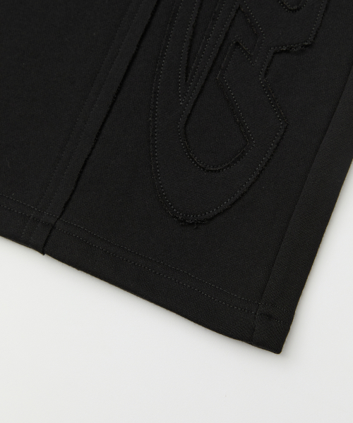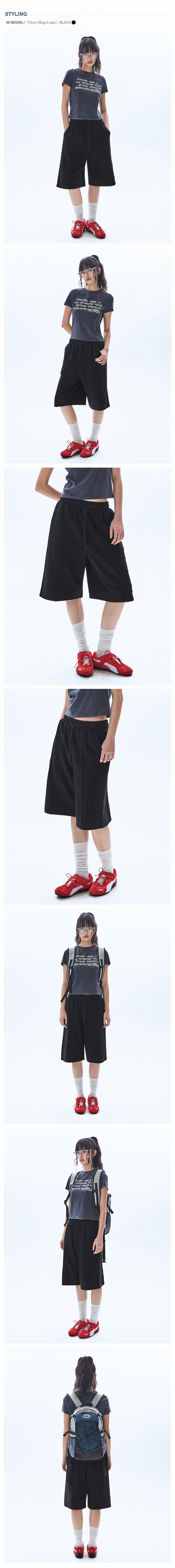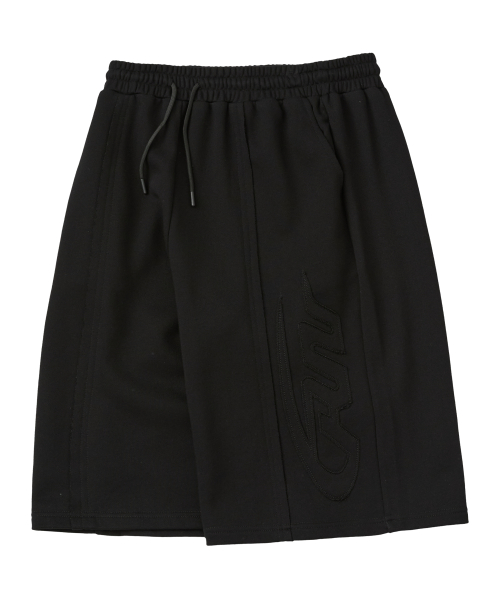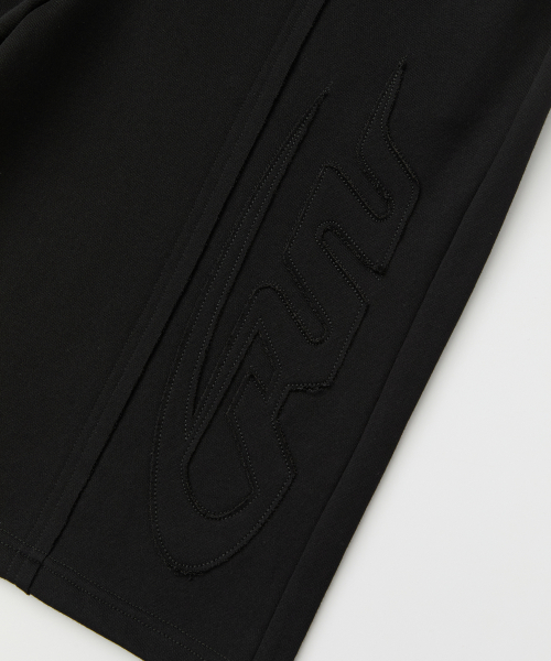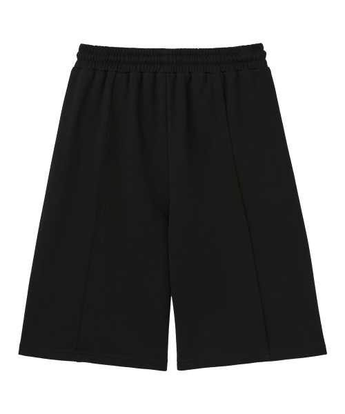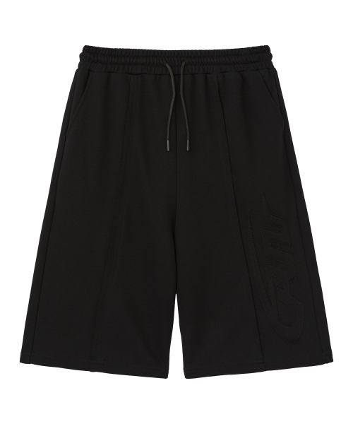 빅 패치 버뮤다 와이드 밴딩 스웨트 팬츠_블랙
