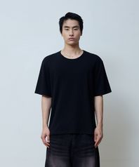 SLUB U-NECK HALF CROP T-SHIRTS (BLACK)