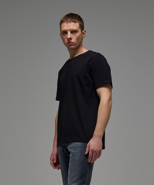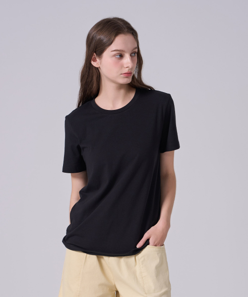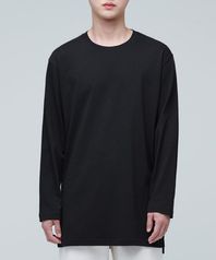 레이어드 크루 넥 긴소매 티셔츠_긴 기장 [블랙]