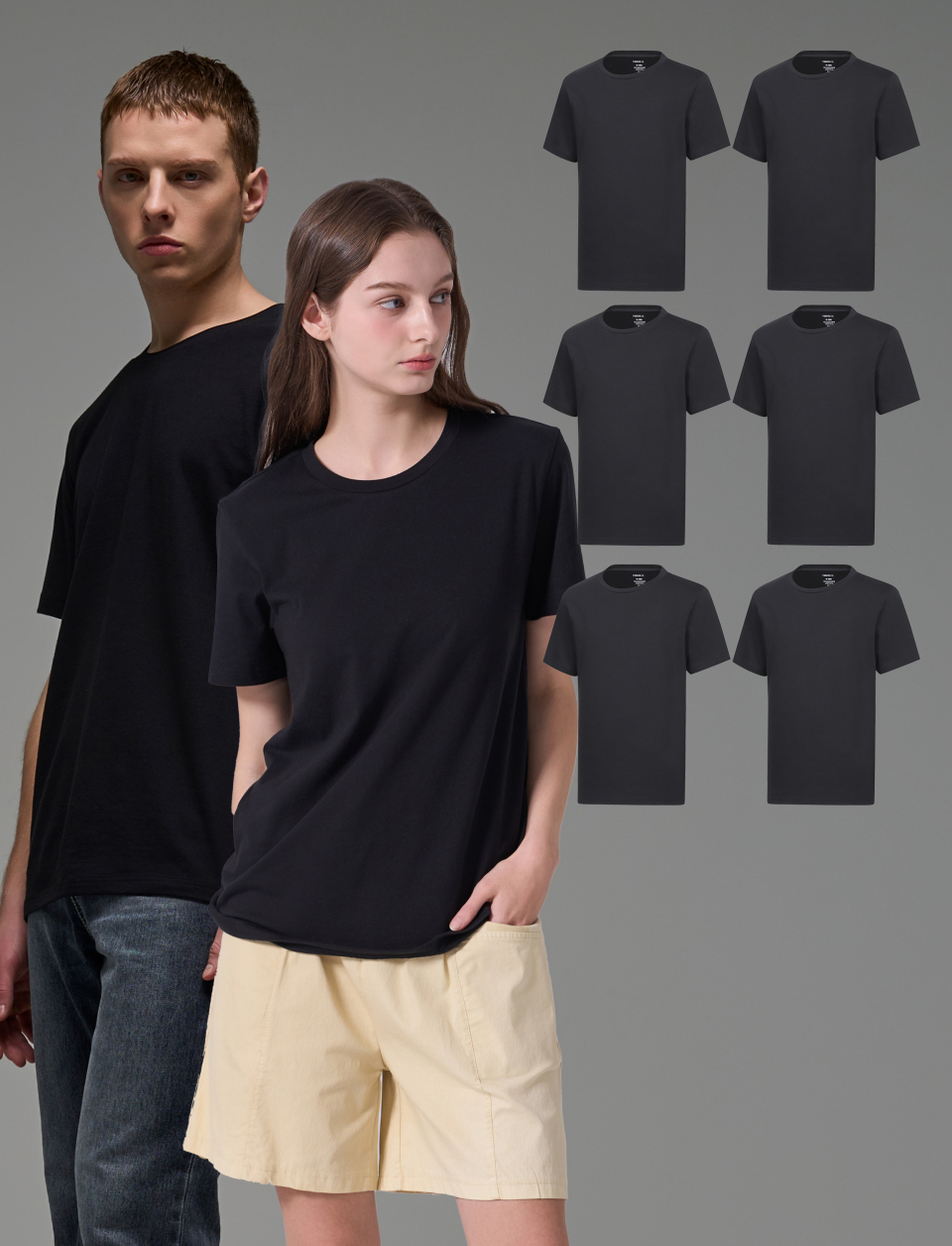 [6PACK] 남녀공용 베이직 언더 티셔츠 블랙