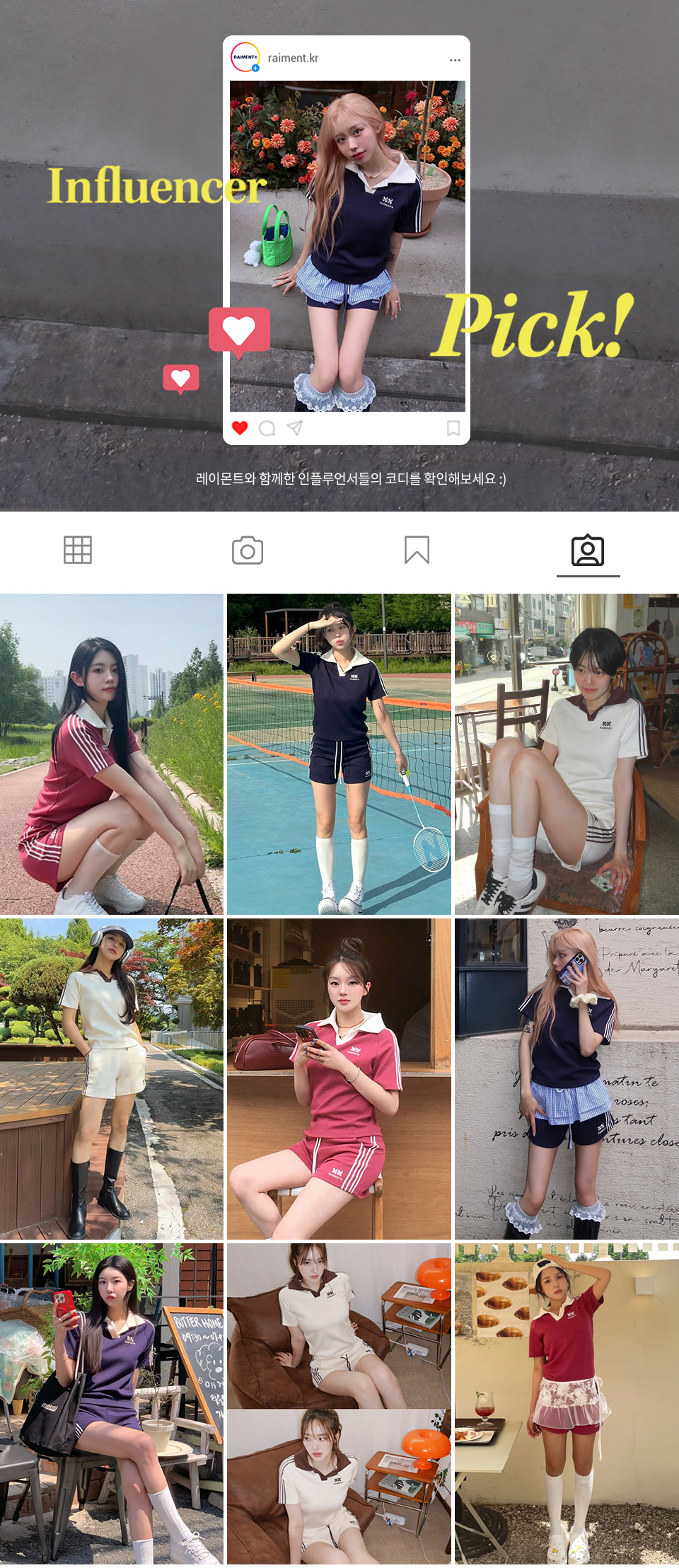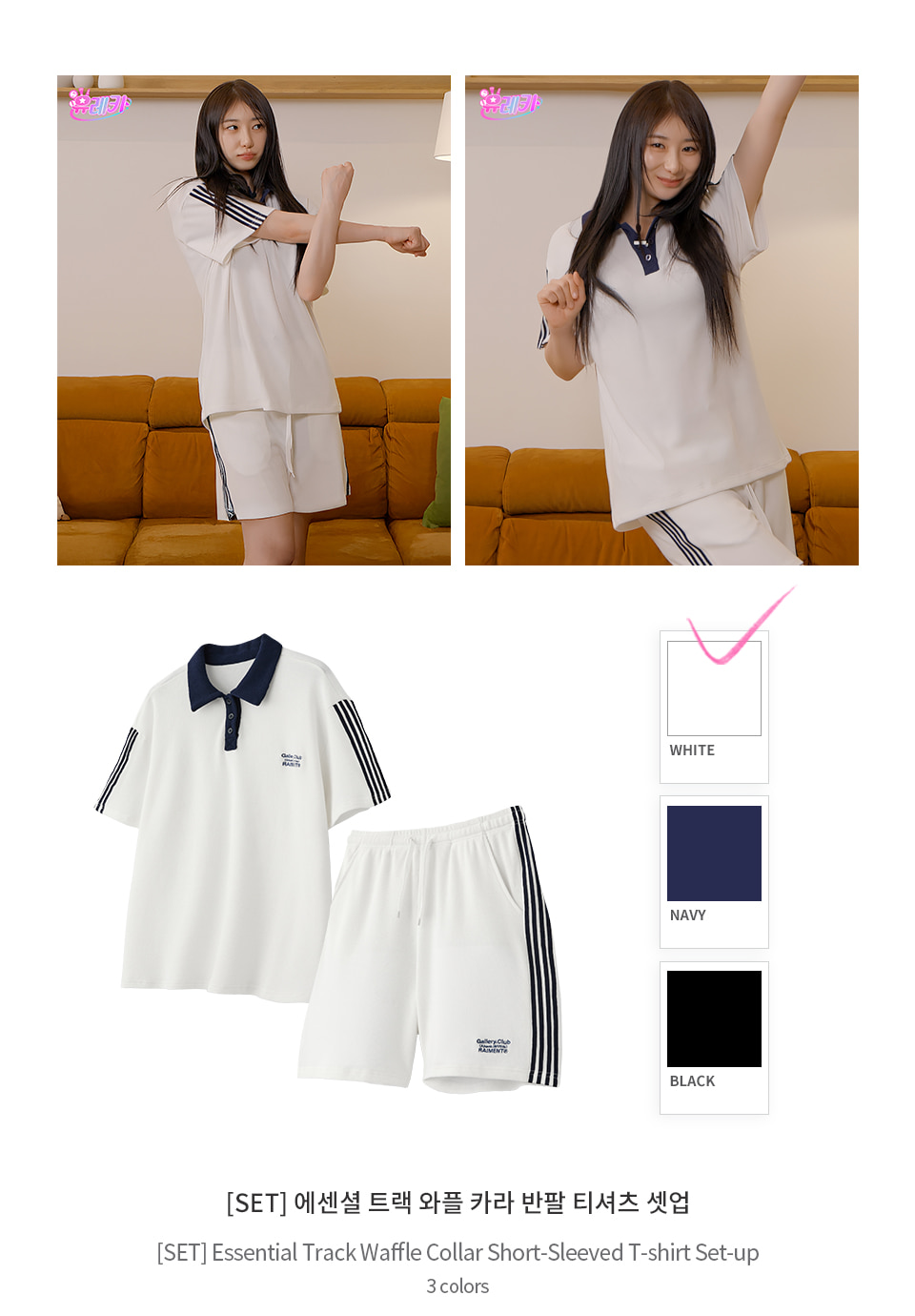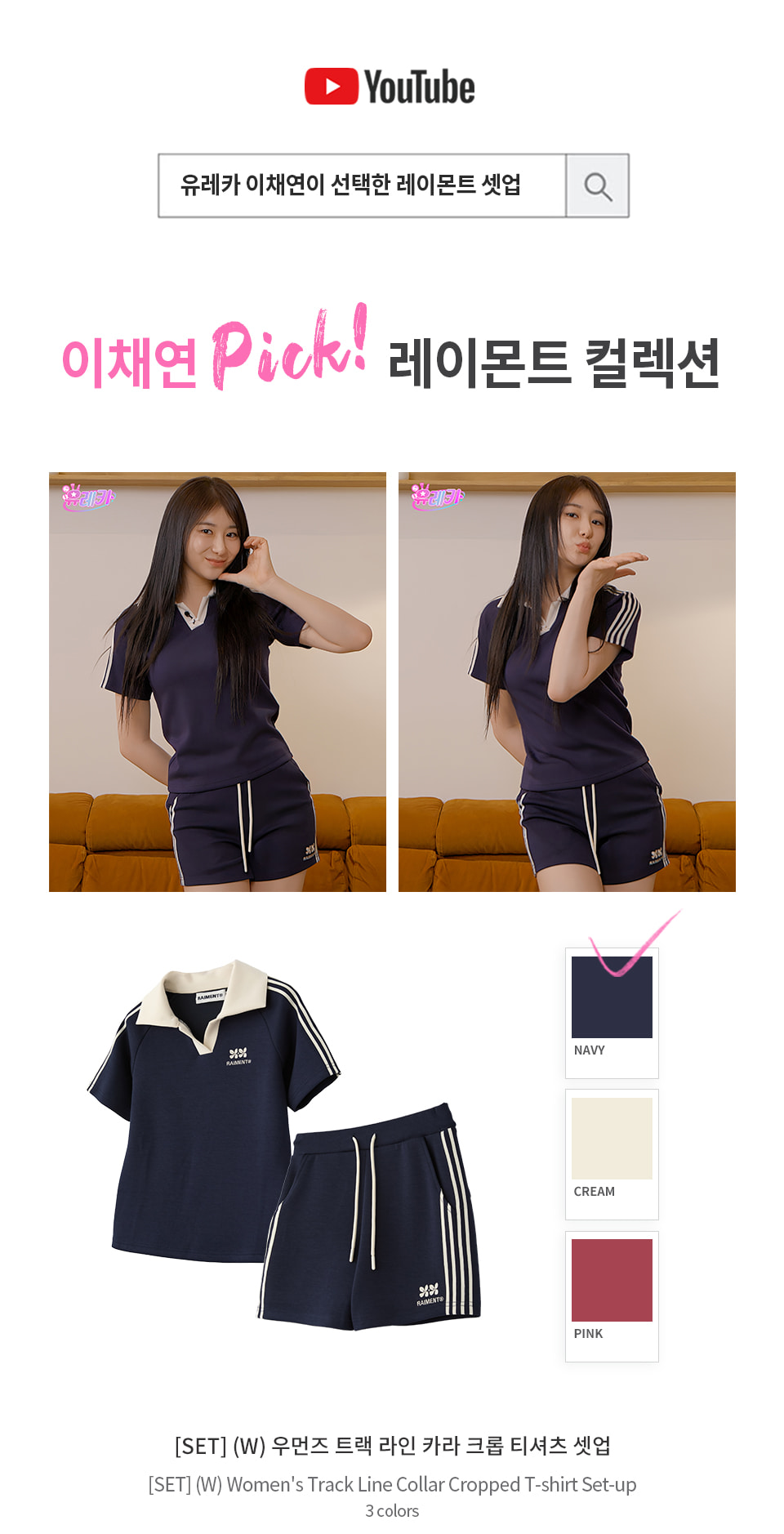 [이채연 착용] (W) 우먼즈 트랙 라인 카라 크롭 티셔츠_크림