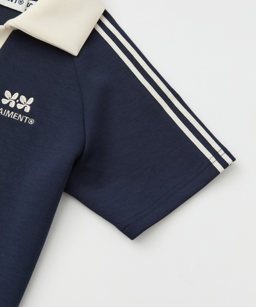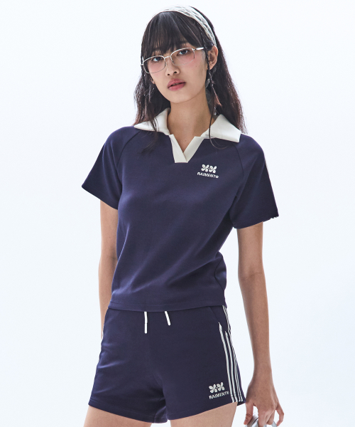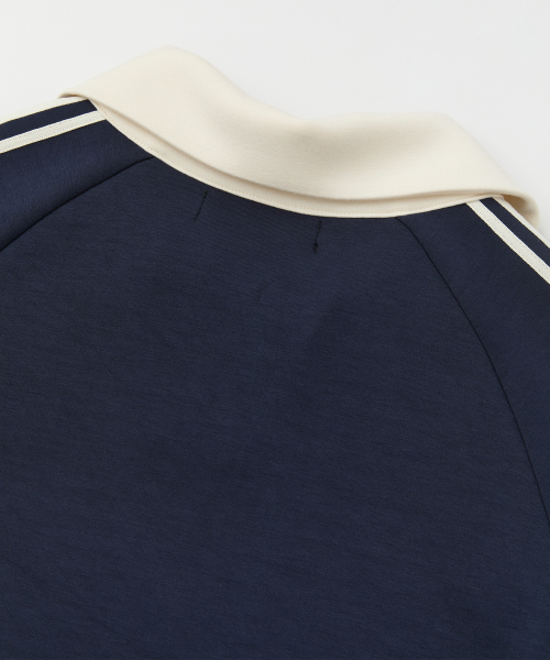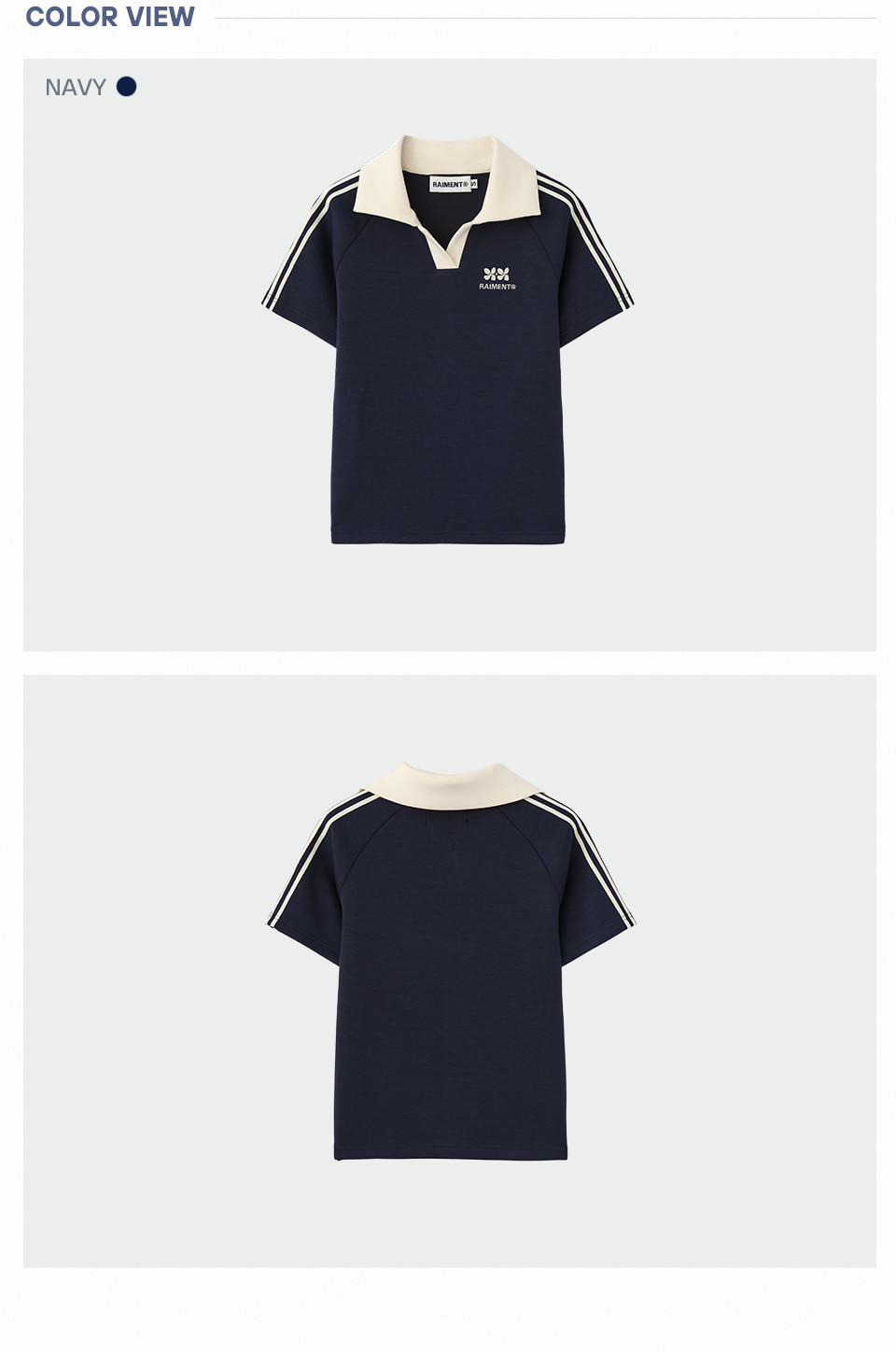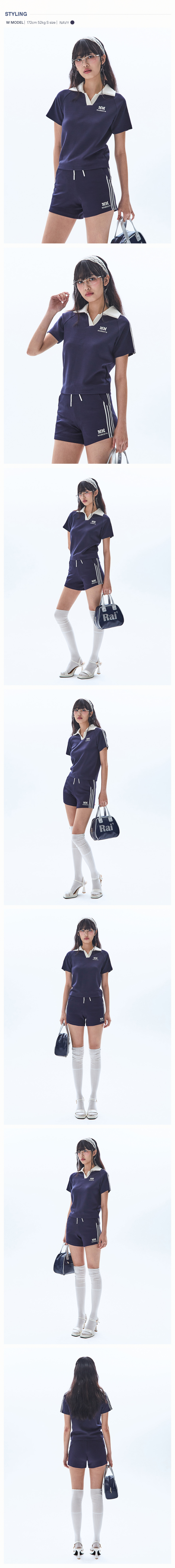 (W) 우먼즈 트랙 라인 카라 크롭 티셔츠_네이비