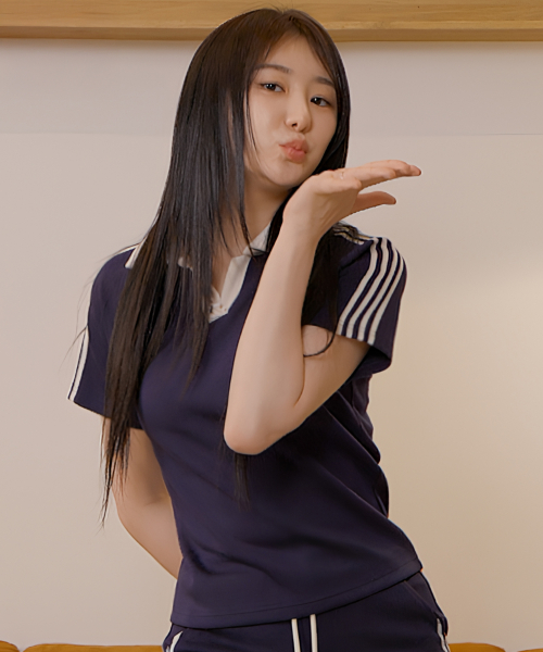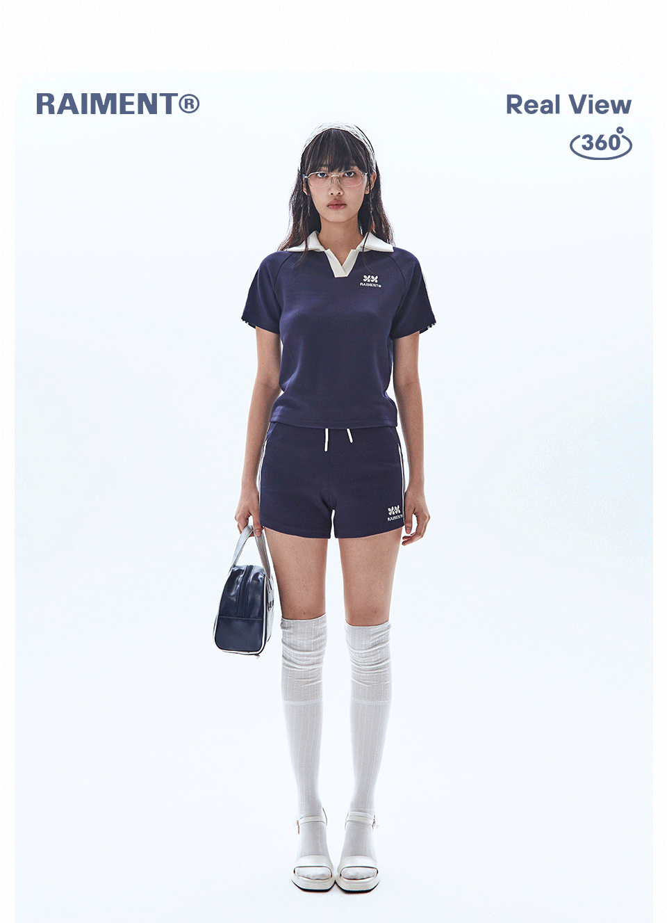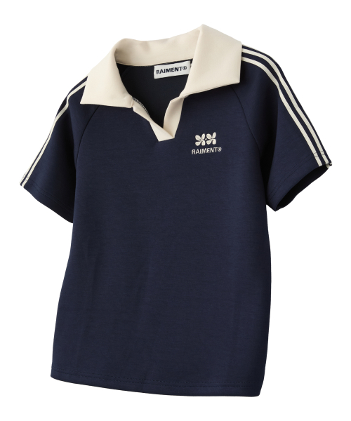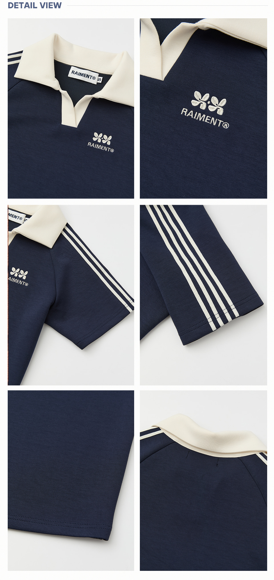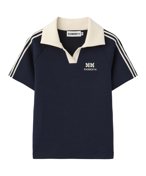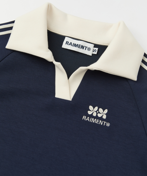 (W) 우먼즈 트랙 라인 카라 크롭 티셔츠_네이비